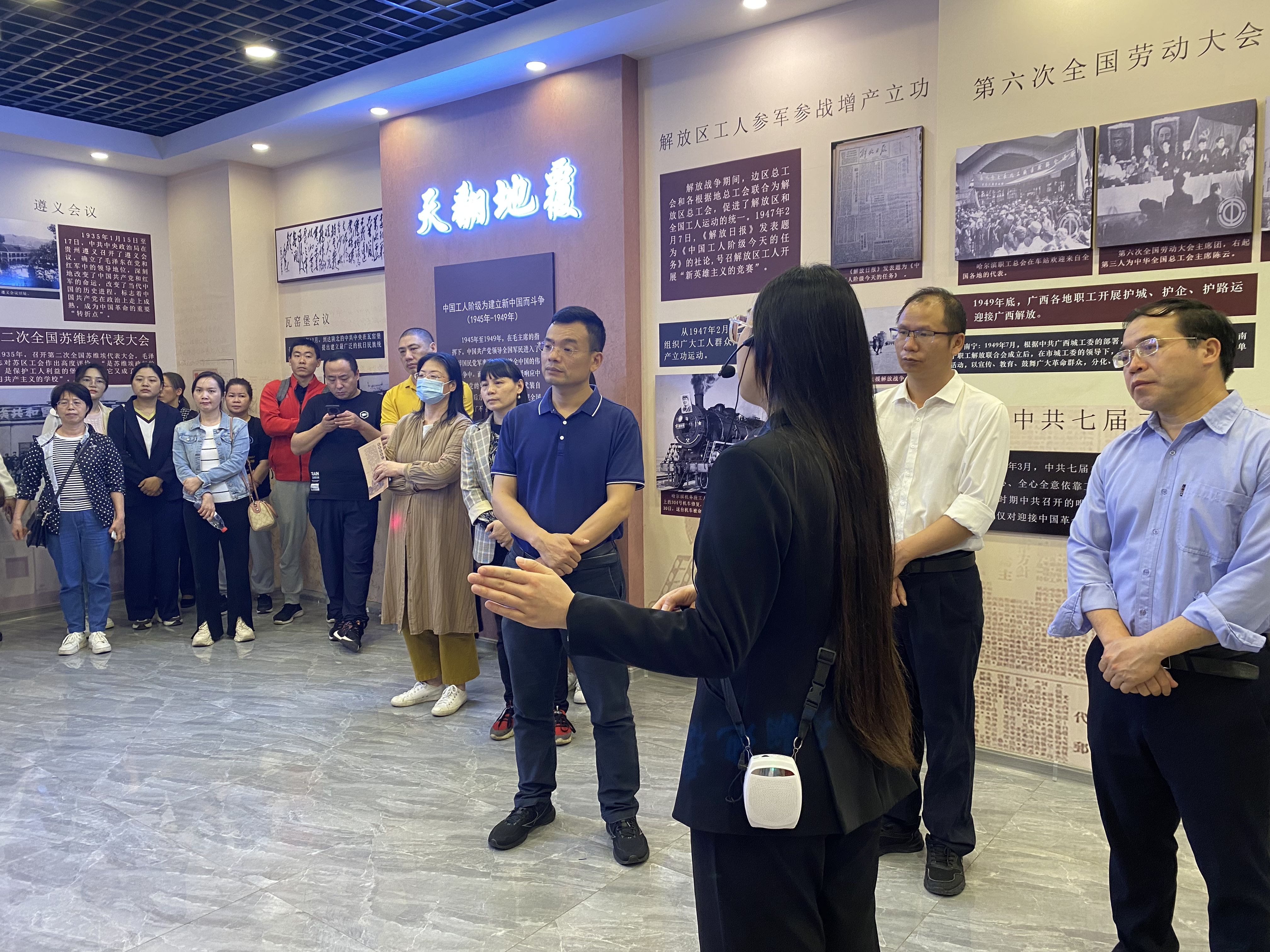 在解说员的引领下,大家参观了红色工运史陈列展馆,学习了1919年至1949年期间,在中国共产党领导下的中国工人运动发展历程中的重要历史事件,了解老一辈共产党人、工人领袖带领人民群众解放广西、建设南宁的真实故事。