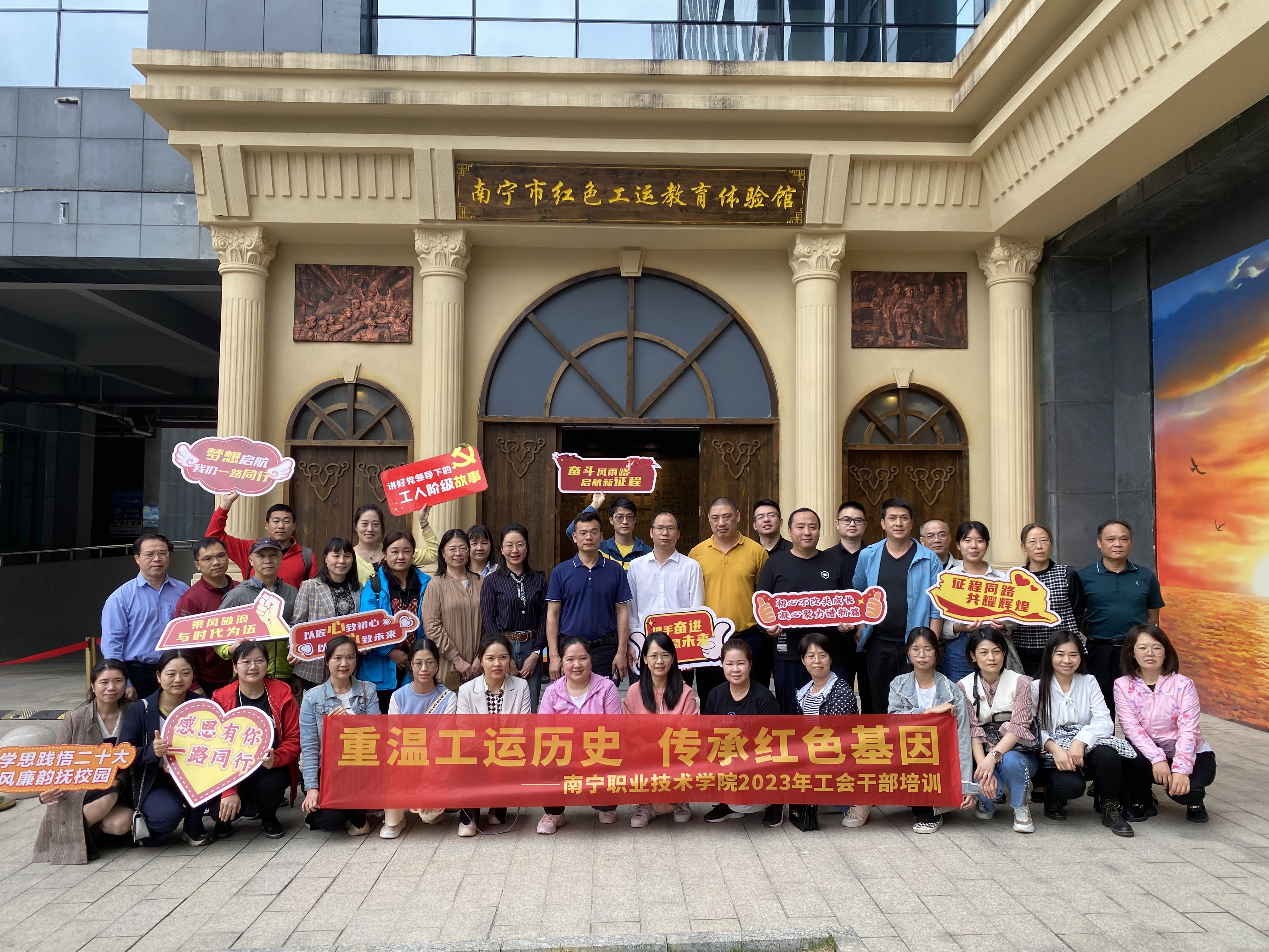 为适应新形势需要,提高必赢官网工会干部综合素质和工作水平,进一步激发工会组织活力,4月6日下午,学校工会主席、副校长李东升率领40名工会干部走进南宁市红色工运教育体验馆,参加了一场别开生面的红色教育体验活动。
