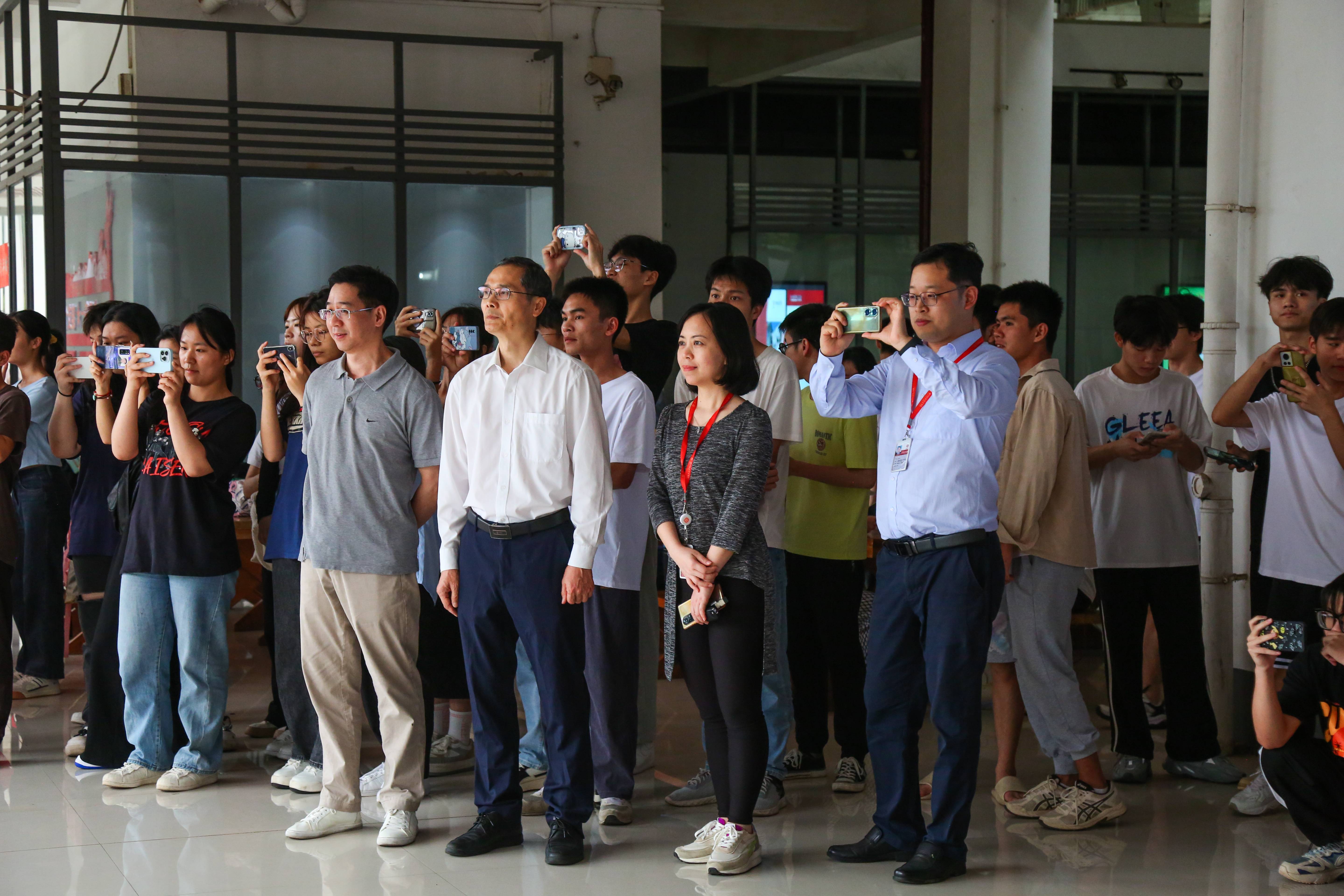 学校领导、老师和同学们驻足观看表演(韦思哲/摄)
