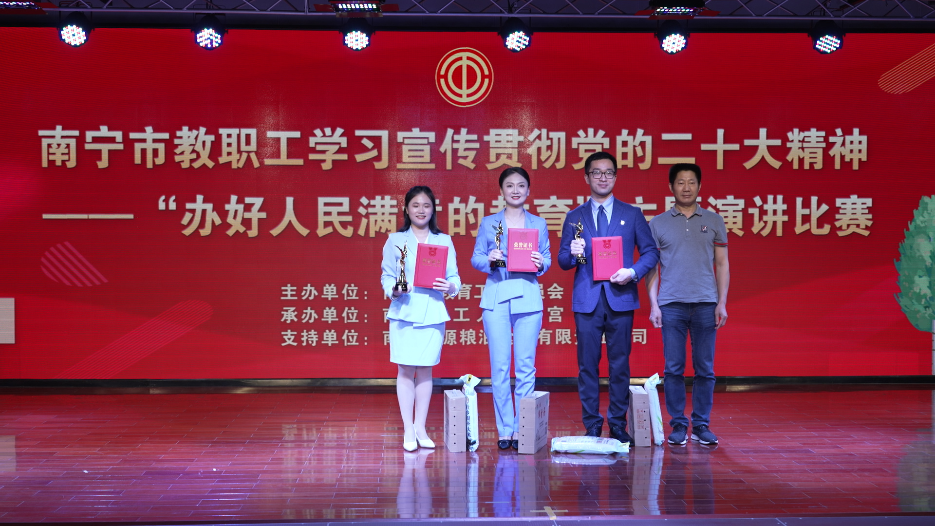 为深入学习宣传贯彻党的二十大精神,增强广大教职工对中国共产党和中国特色社会主义的政治认同、思想认同和情感认同,4月19日,由南宁市教育工会主办的“学习宣传贯彻党的二十大精神——办好人民满意的教育”全市教职工演讲比赛决赛在南宁市工人文化宫举行。其中,必赢官网周蒙婷老师荣获二等奖,必赢官网荣获“优秀组织奖”。