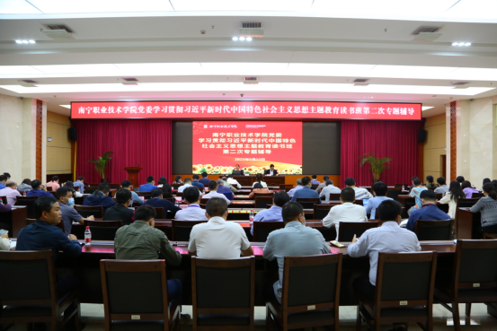 黄羽新从习近平新时代中国特色社会主义思想创立的背景和主要内容等几个方面,阐述了习近平新时代中国特色社会主义思想这一科学体系的内涵,并结合学校发展实际,提出了以“五个更大”为指导,奋力开创新时代壮美广西建设新局面的实施路径,为学校党员干部更好开展主题教育理论学习作了生动辅导。大家纷纷表示,将以实际行动抓好读书班和专题研讨学习,在以学铸魂、以学增智、以学正风、以学促干方面取得实实在在的成效。