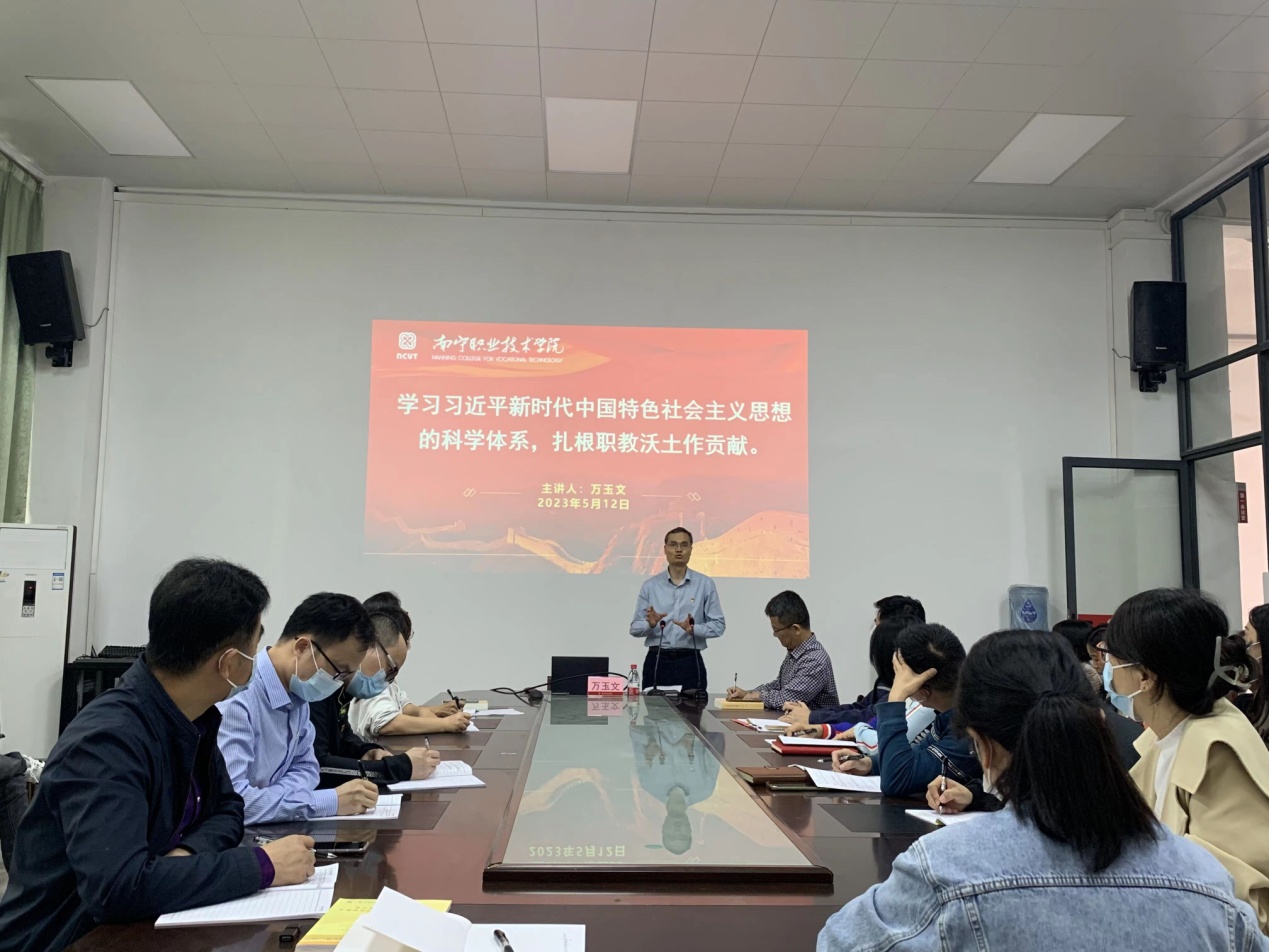 5月12日,学校副校长万玉文以《学习贯彻习近平新时代中国特色社会主义思想的科学体系,扎根职教沃土作贡献》为题,为智能制造学院全体党员同志讲授专题党课。