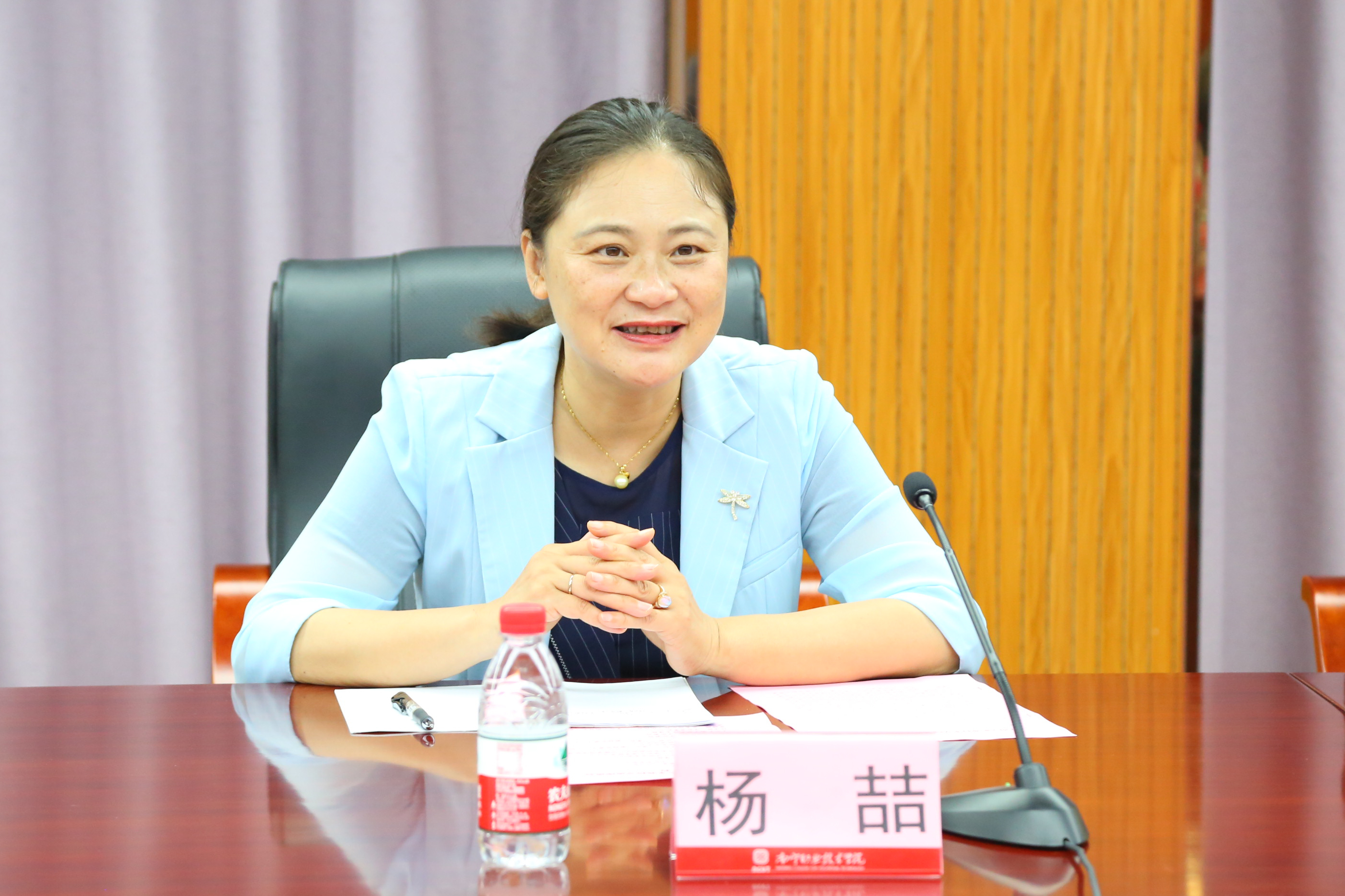 杨清源对杨喆一行的到来表示热烈欢迎,简要介绍学校基本情况、党建情况等。杨清源表示,近年来,学校坚持以政治建设为统领,深入推进“一学院一品牌、一支部一特色”党建品牌创建,建成3个“全国党建工作样板支部”,获首批新时代广西高校党建工作标杆院系1个、样板支部1个,入选首批广西高校党建创新典型案例和示范党建品牌5个,首批新时代广西高校教师党支部“双带头人”培育创建单位1个,以高质量党建推动学校高质量发展,为全面建设“双高”校、全力抓好升本工作提供了坚强的政治保证。希望双方进一步加强学习交流,增进了解,互帮互助,共同推动两校的建设发展。