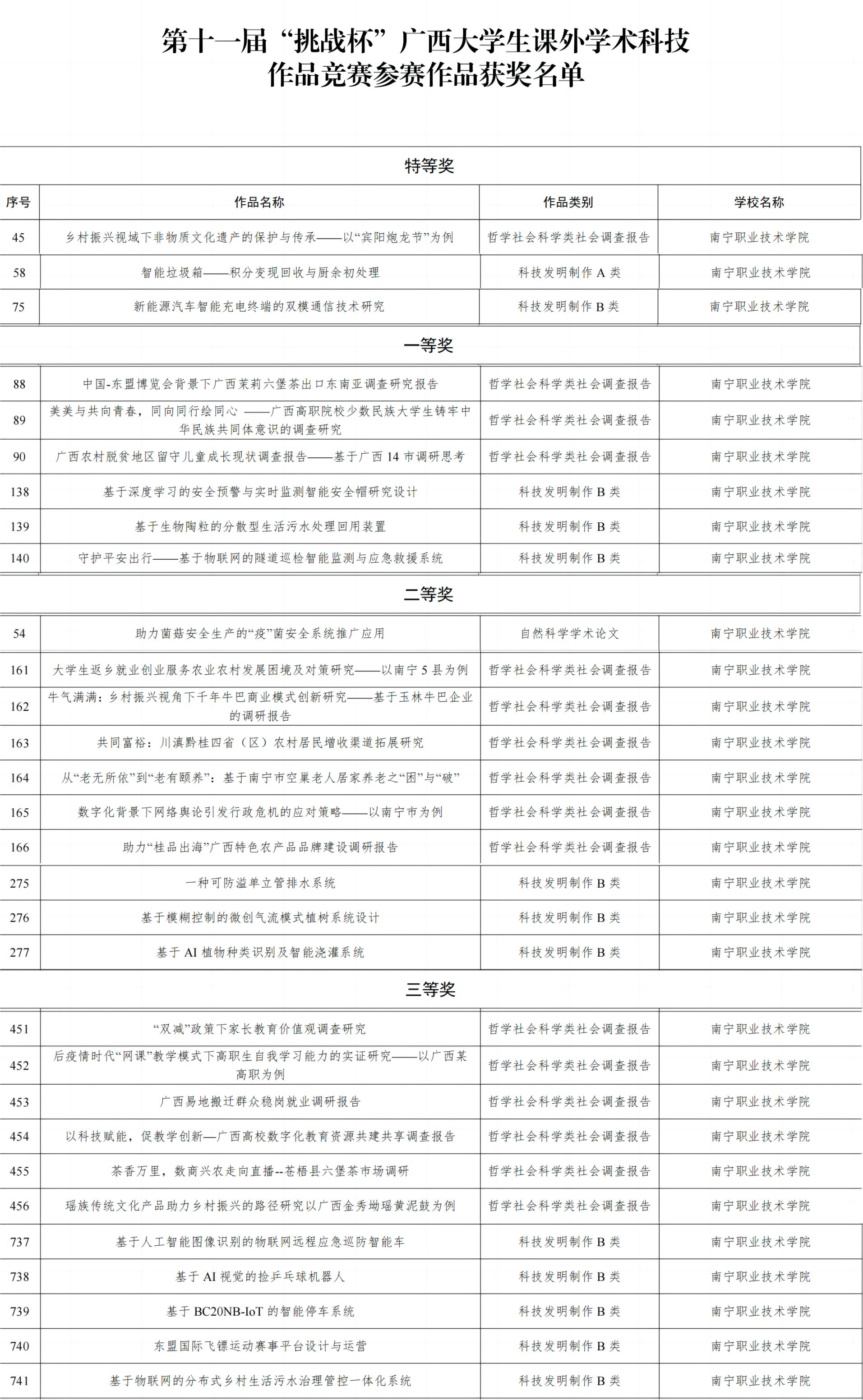必赢官网在第十一届“挑战杯”广西大学生课外学术科技作品竞赛中的获奖作品