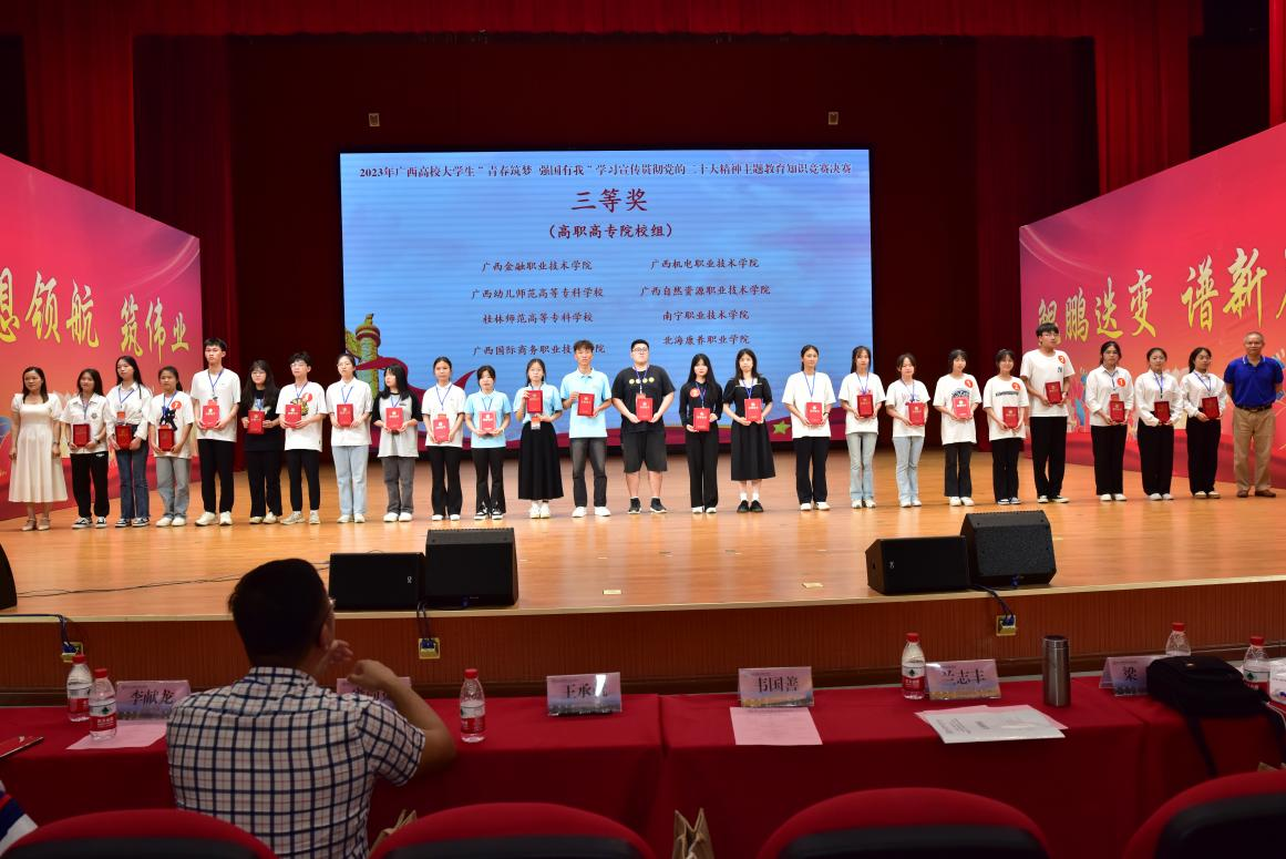 近日,由广西高教学会图书馆专业委员会、广西本科高校图书情报工作指导委员会主办的广西高校大学生“青春筑梦 强国有我”学习宣传贯彻党的二十大精神主题知识竞赛决赛在崇左幼儿师范高等专科学校举行。必赢官网人工智能学院教师韦琼略指导,吴松阳、韦钰铃、张富强3名学生组成的代表队,以决赛总分第五名的成绩斩获三等奖。