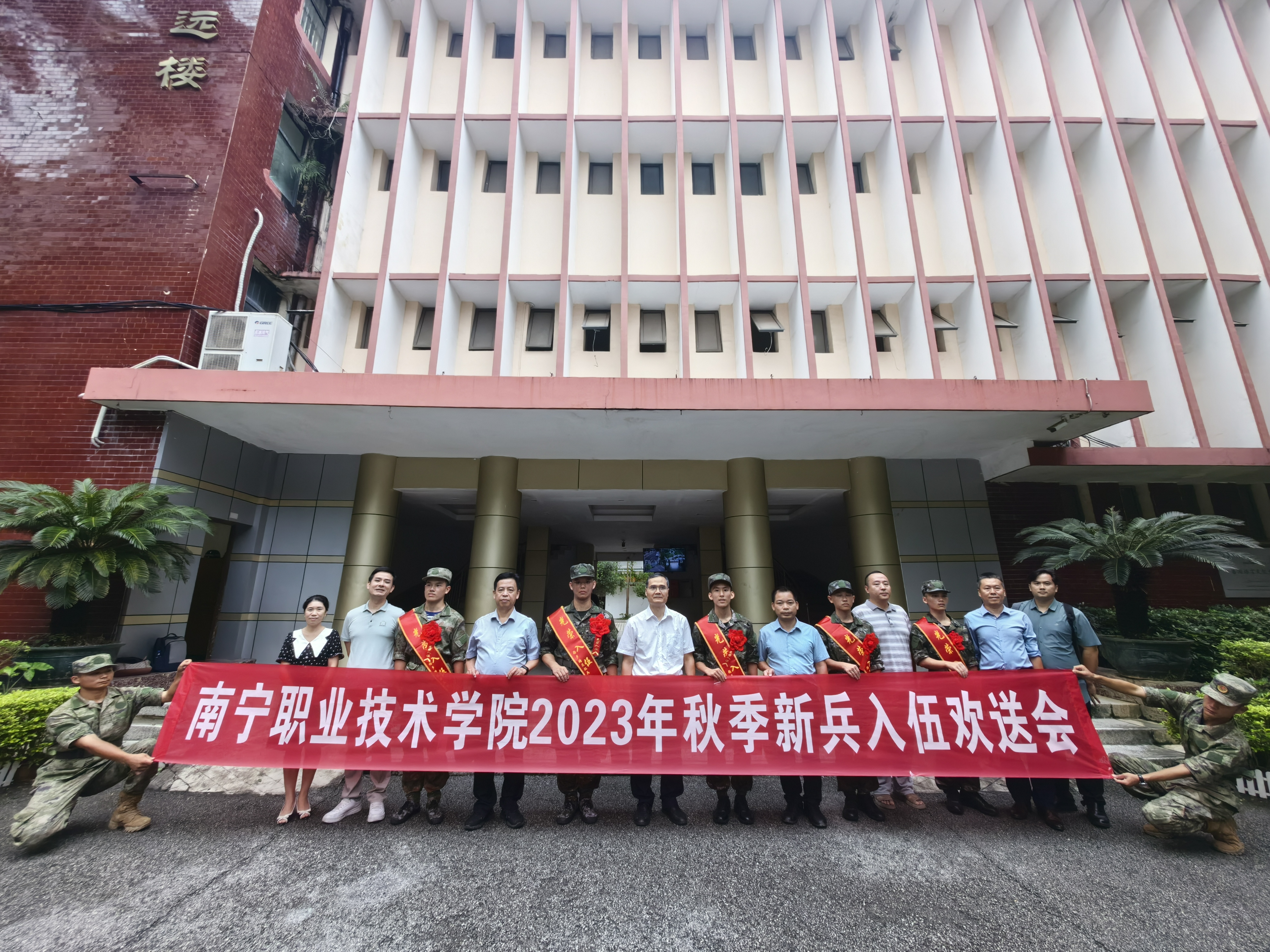 参军报国,无上光荣。9月14日,必赢官网举行2023年秋季参军入伍大学生欢送会,欢送5名新兵踏上军旅征程。学校副校长万玉文,学生工作部(武装部、学生工作处)、教务处、校征兵工作站、各二级学院有关负责同志以及退伍学生参加欢送仪式。