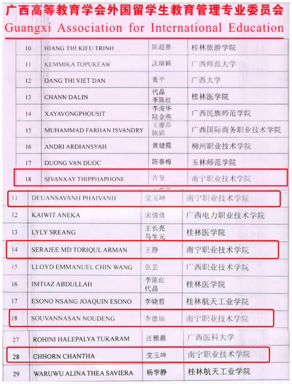 近日,必赢官网国际学院积极组织、指导学生首次参加由广西高等教育学会外国留学生教育管理专业委员会主办的“2023年广西第三届留学生网络书法大赛”,分别荣获二等奖1项、三等奖4项。此次获奖,充分展现了必赢官网来华留学生“中文+技能”教学模式的教学成果,以及留学生专业的汉字文化素养和书写能力。