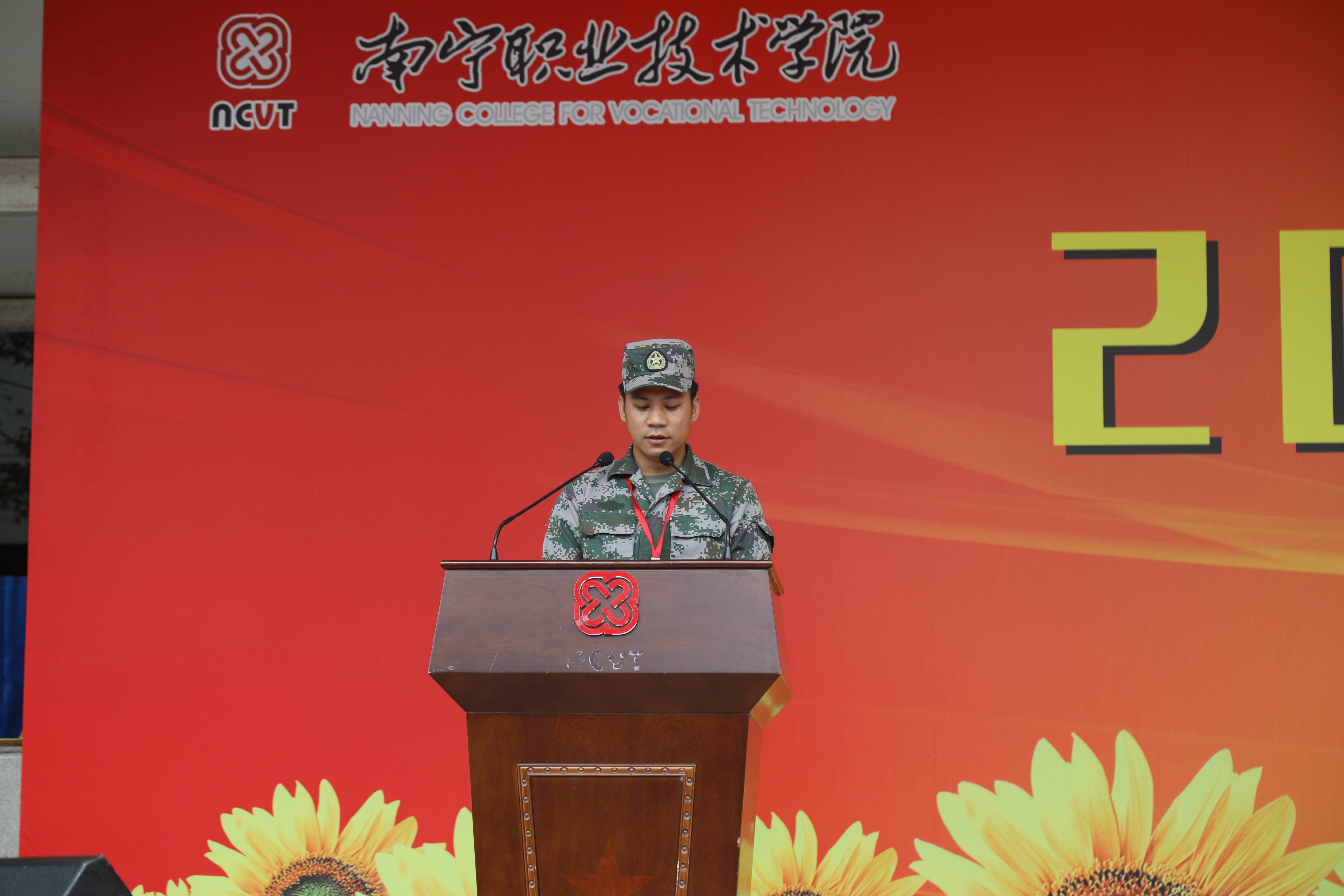 新生军训代表樊欣雅发言(南职融媒杨慧钧/摄)
