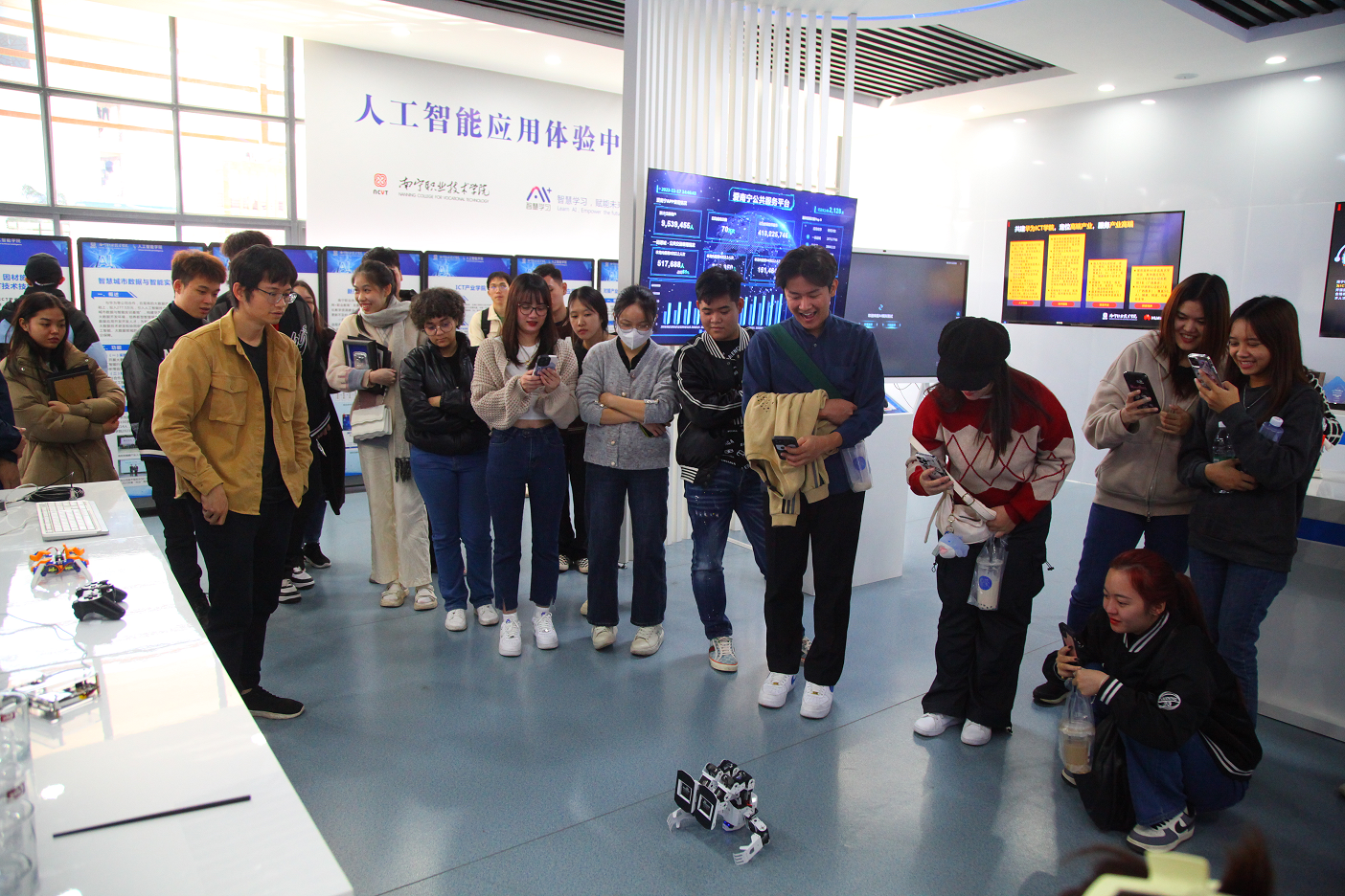 人工智能科技作品参观、机器狗体验和新一代信息技术培训现场(南职融媒陆鹏宇/摄)