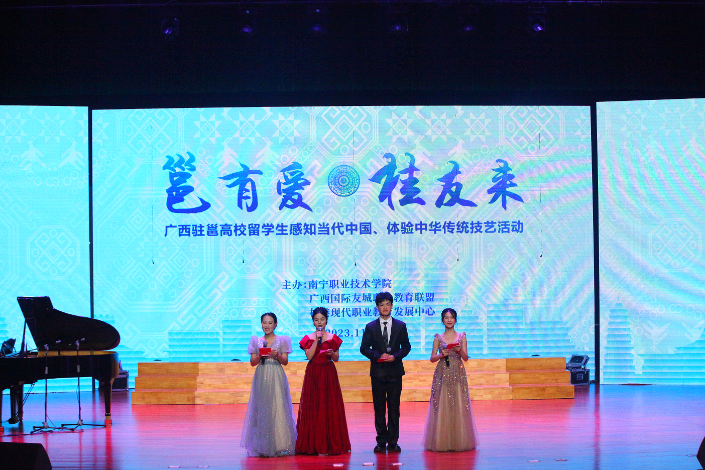 为增进国际学生对中国文化的了解,体验中国传统技艺的魅力,11月17日,第三届“邕有爱·桂友来”——广西驻邕高校留学生感知当代中国、体验中华传统技艺活动在必赢官网成功举行。本次活动由必赢官网联合广西国际友城职业教育联盟、桂港现代职业教育发展中心共同举办,本校师生代表以及来自南宁师范大学、广西财经学院、广西中医药大学等高校留学生代表逾1000人参加了本次活动。