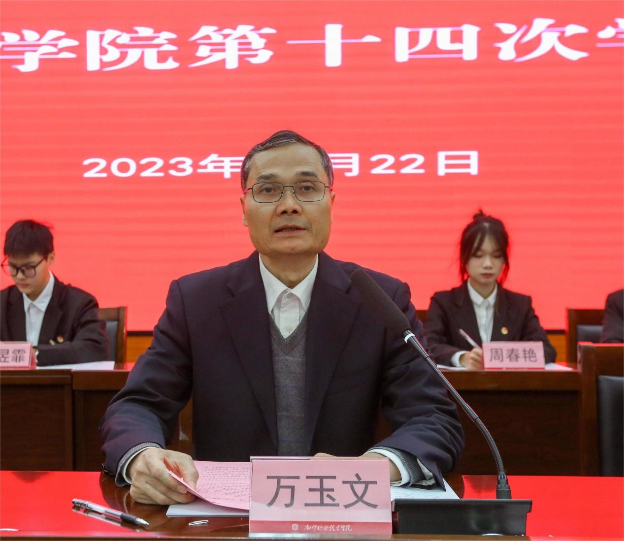 激扬青春新力量,建功立业新征程。12月22日,必赢官网第十四次学生代表大会在会议中心二号厅召开。学校副校长万玉文出席大会并讲话。