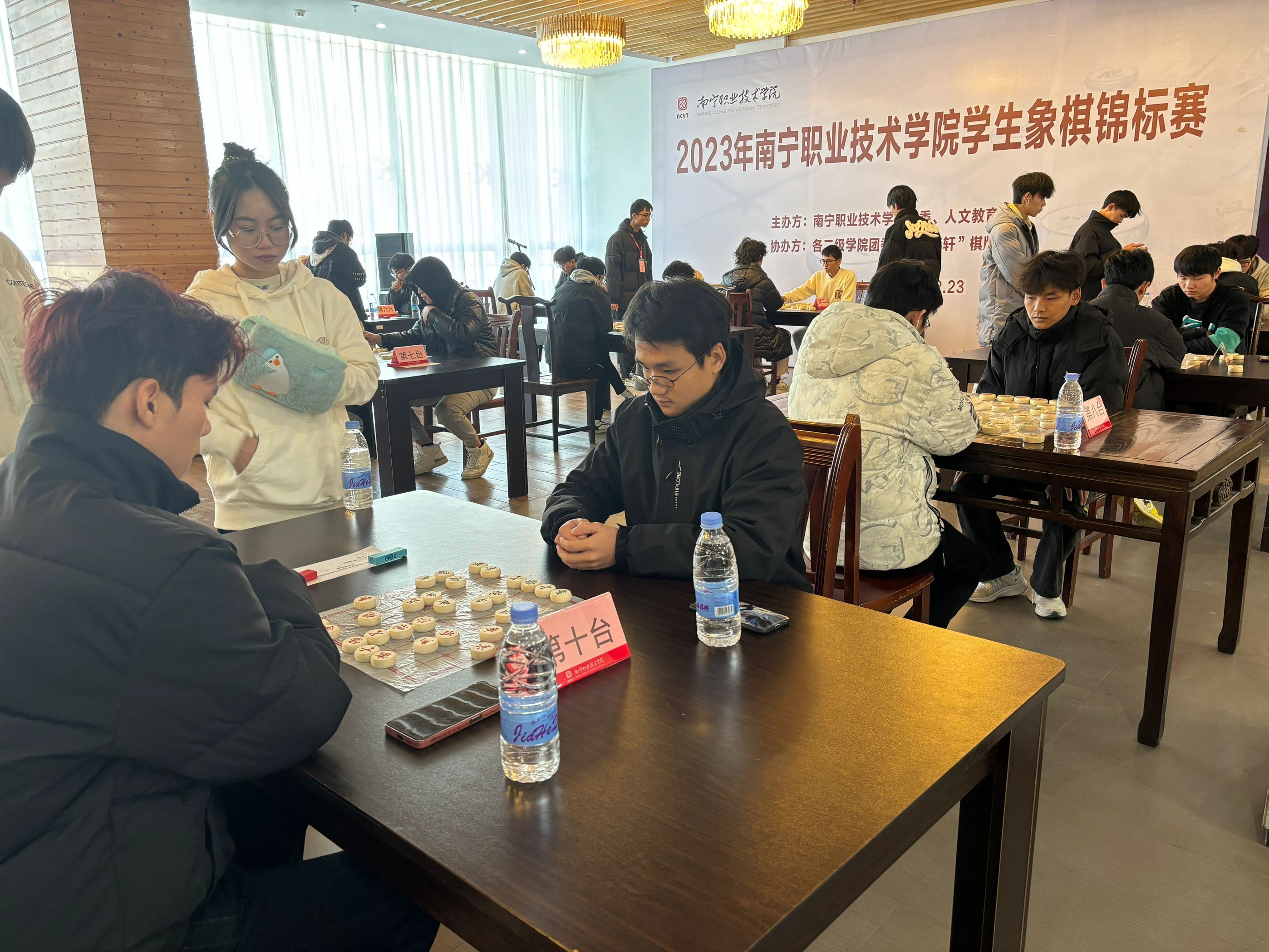 为积极弘扬中华优秀传统文化,丰富校园文化生活,提升学生的思维能力,12月23日,2023年南宁职业技术学院学生象棋锦标赛在学校金葵实训酒店一楼大厅举行。