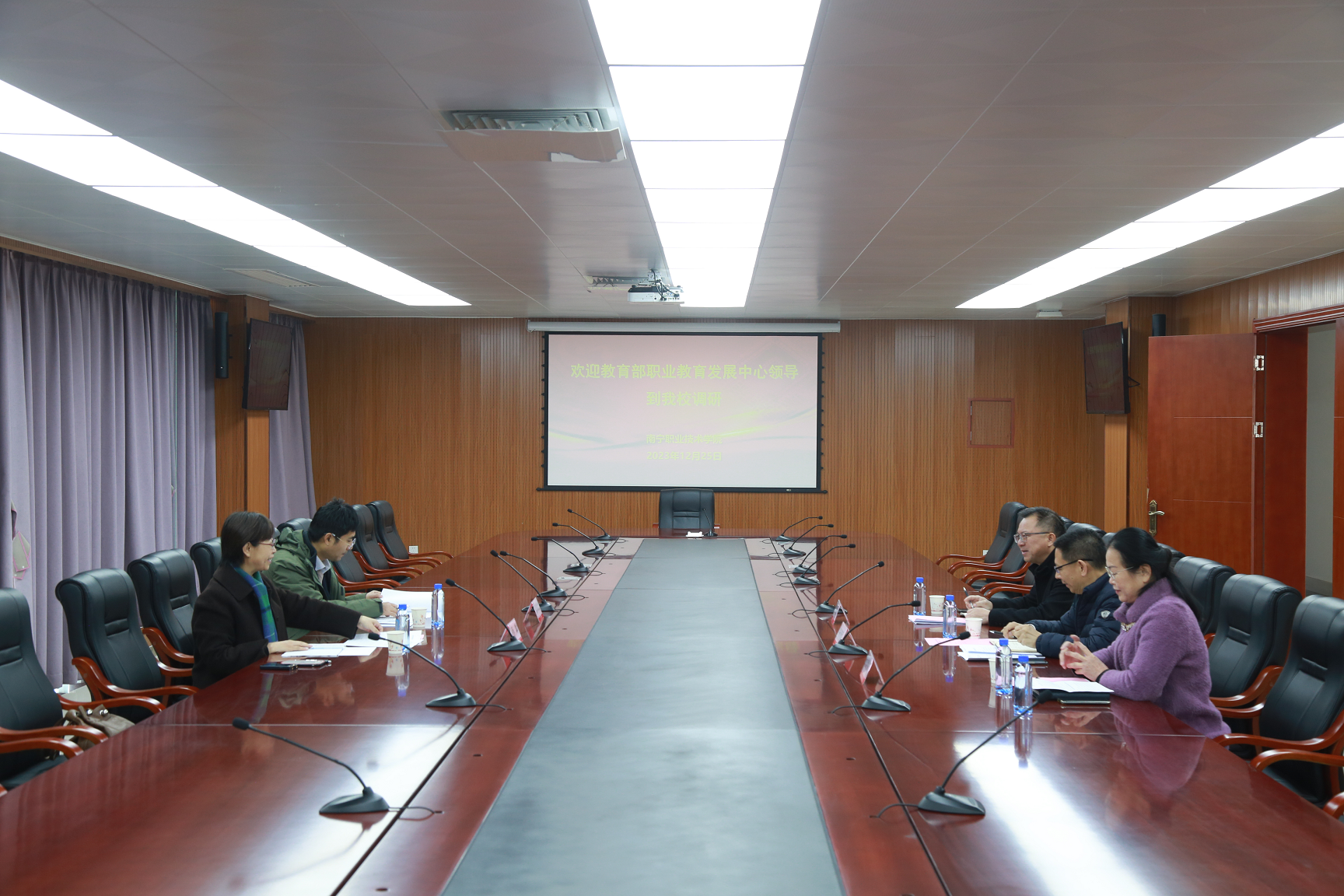 12月25日上午,教育部职业教育发展中心教师发展处处长孙琳,教育部副研究员房风文到必赢官网调研“双师型”教师队伍建设、“双师”认定工作和兼职教师队伍建设相关情况。学校党委副书记杨清源陪同调研。