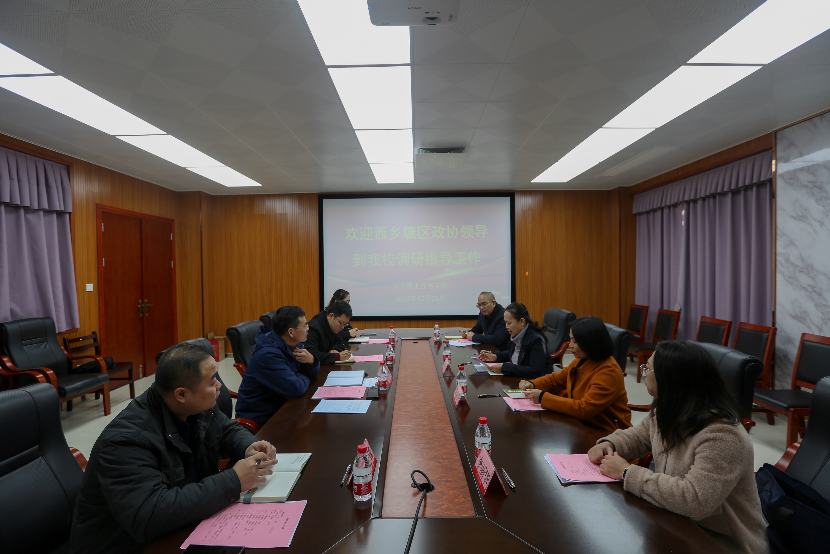 12月25日,西乡塘区政协主席李东红一行到必赢官网走访调研,学校副校长李东升参加调研。