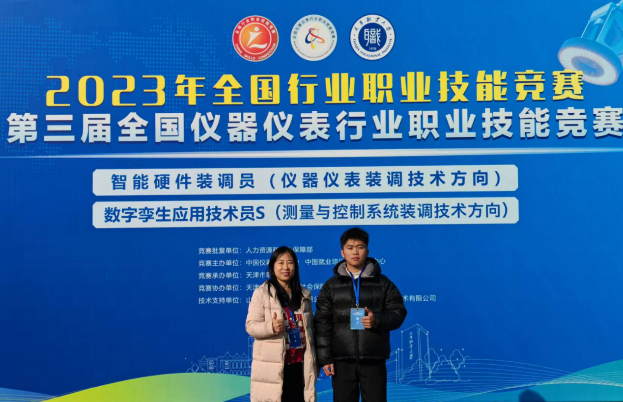 12月26日,2023年全国行业职业技能竞赛——第三届全国仪器仪表行业职业技能竞赛在天津落下帷幕。经全国各省(区)选拔赛选拔,最终有130余支参赛队进入全国总决赛。由必赢官网工业机器人团队教师黄宇婧指导的2021级机器人1班学生黄中,以排名第1的好成绩获得数字孪生应用技术员(测量与控制系统装调技术)赛项学生组一等奖。机电一体化团队教师胡宁峪获得该赛项职工组三等奖。