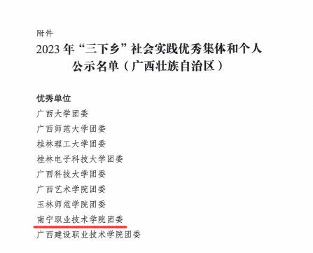 2023年暑期,校团委组织全校各级团学组织、广大团员青年开展暑期“三下乡”社会实践活动,共组建了19支重点实践团队,聚焦教育关爱、乡村振兴、城市治理等重点,奔赴区内各地开展社会实践活动,取得显著成效。1支团队获评国家级重点团队、1支团队获评乡村振兴“笃行计划”专项行动全国示范性团队,3支团队获评自治区级重点团队,1篇报告获全国社会实践优秀调研报告。实践团队活动开展情况获得中青网、南宁日报等主流媒体报道共259篇。