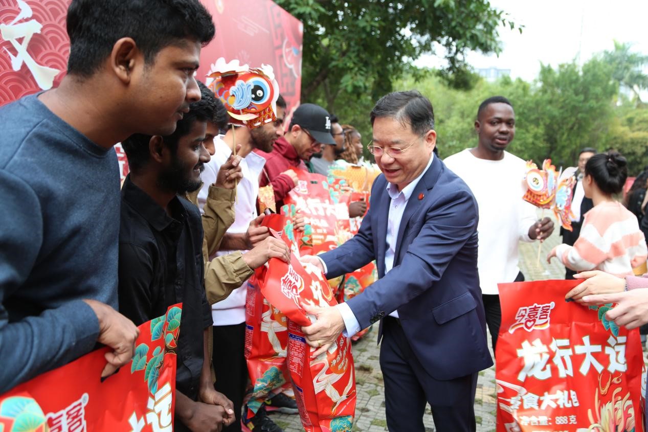 黄春波为留学生送上慰问大礼包(南职融媒梁译/摄)