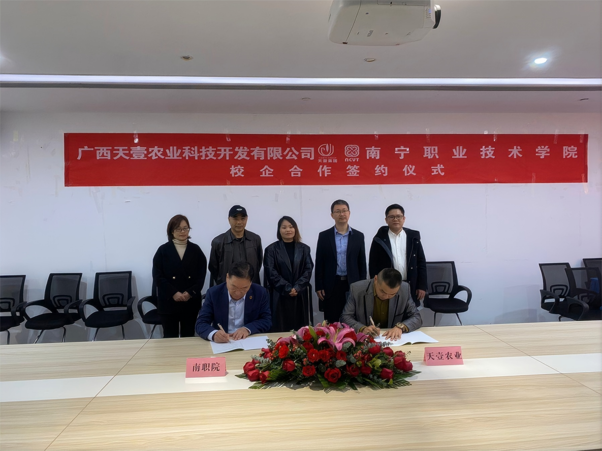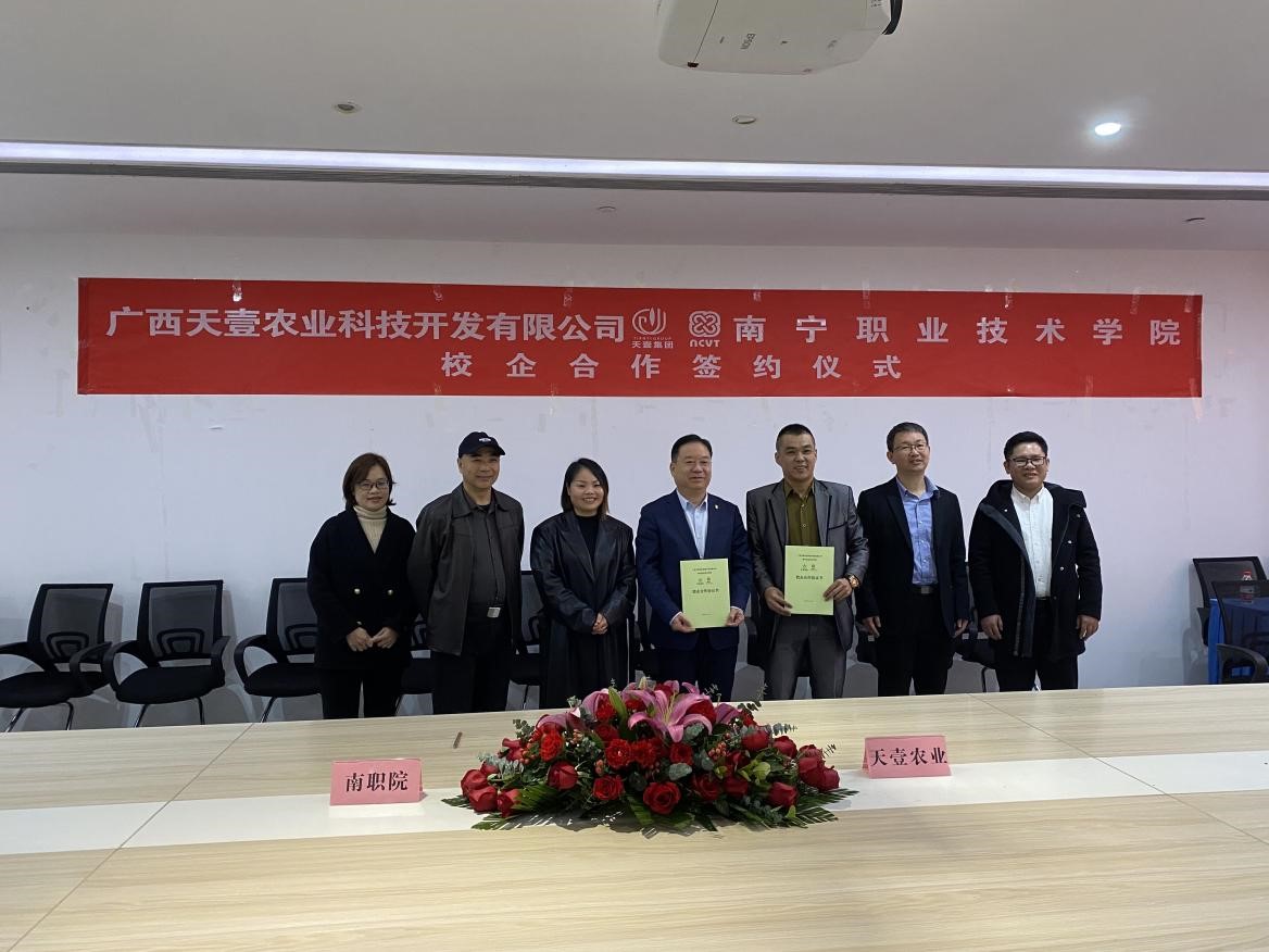 2月2日,必赢官网与广西天壹农业科技开发有限公司校企合作协议签约仪式在南宁启迪东盟科技城举行。副校长黄春波、广西天壹农业科技开发有限公司董事长刘荣分别代表签约。