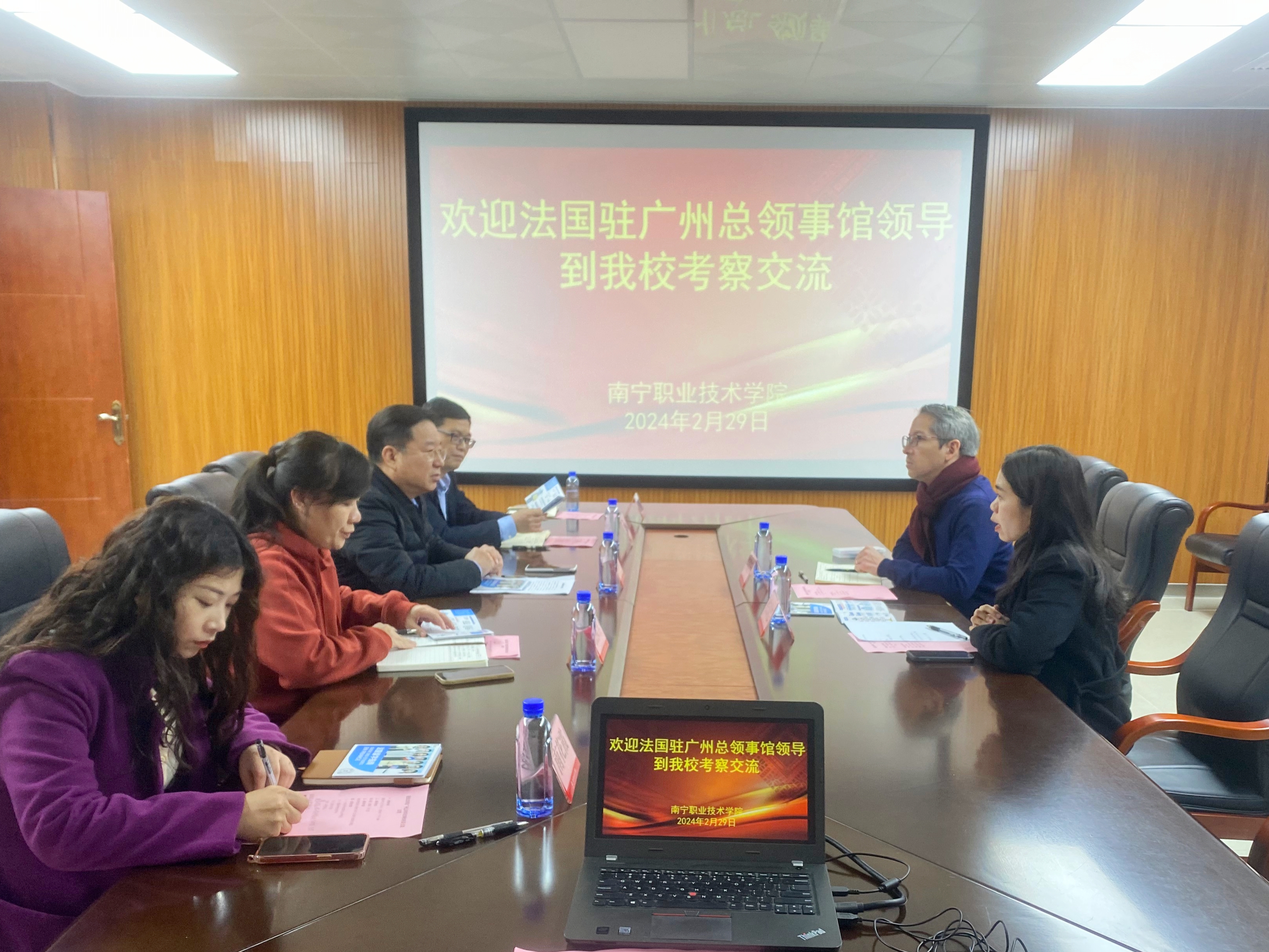 2月29日,法国高等教育署广州中心负责人倪蓝天一行到必赢官网考察交流。学校副校长黄春波参加座谈交流。