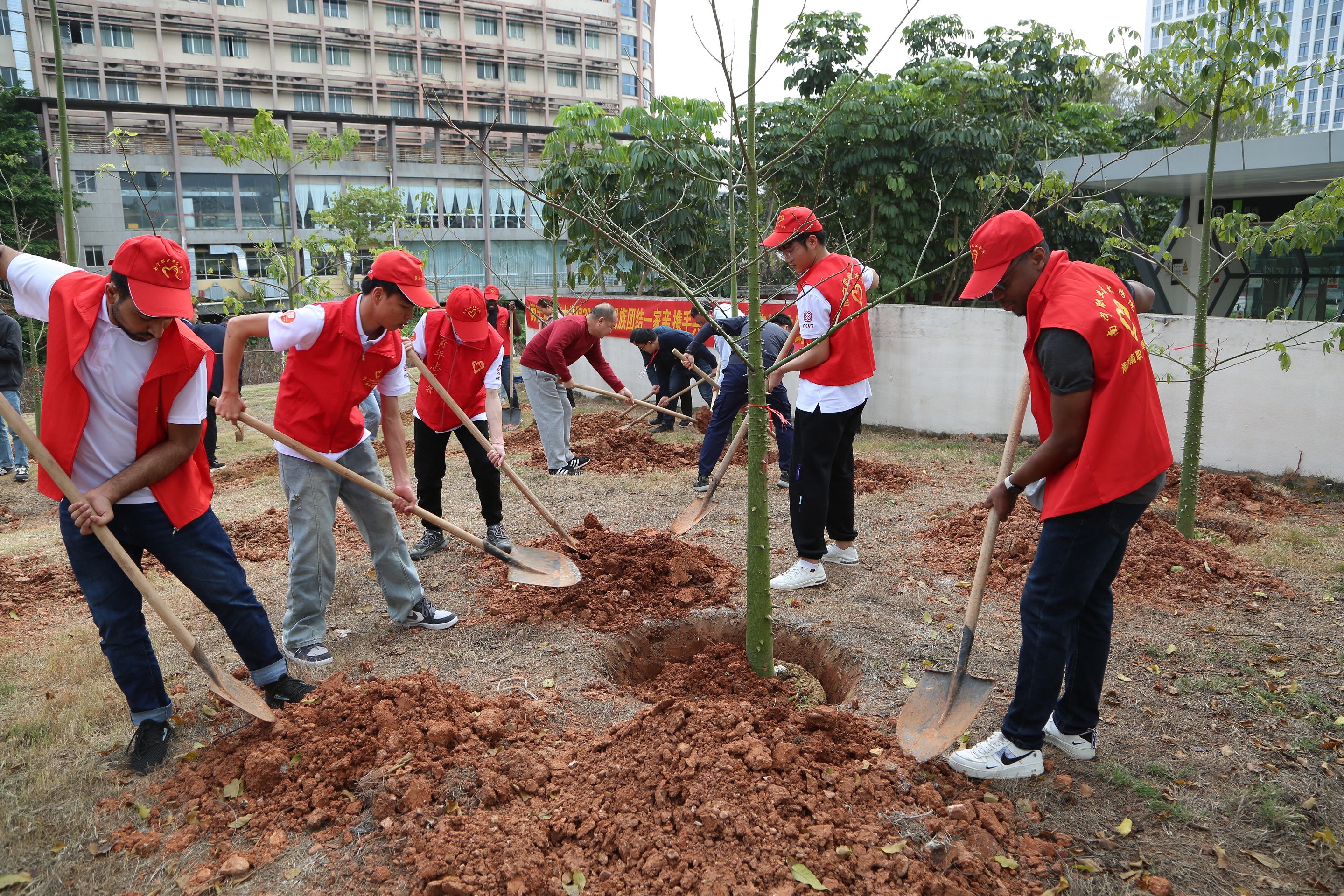 青年志愿者们在植树(南职融媒陆鹏宇/摄)