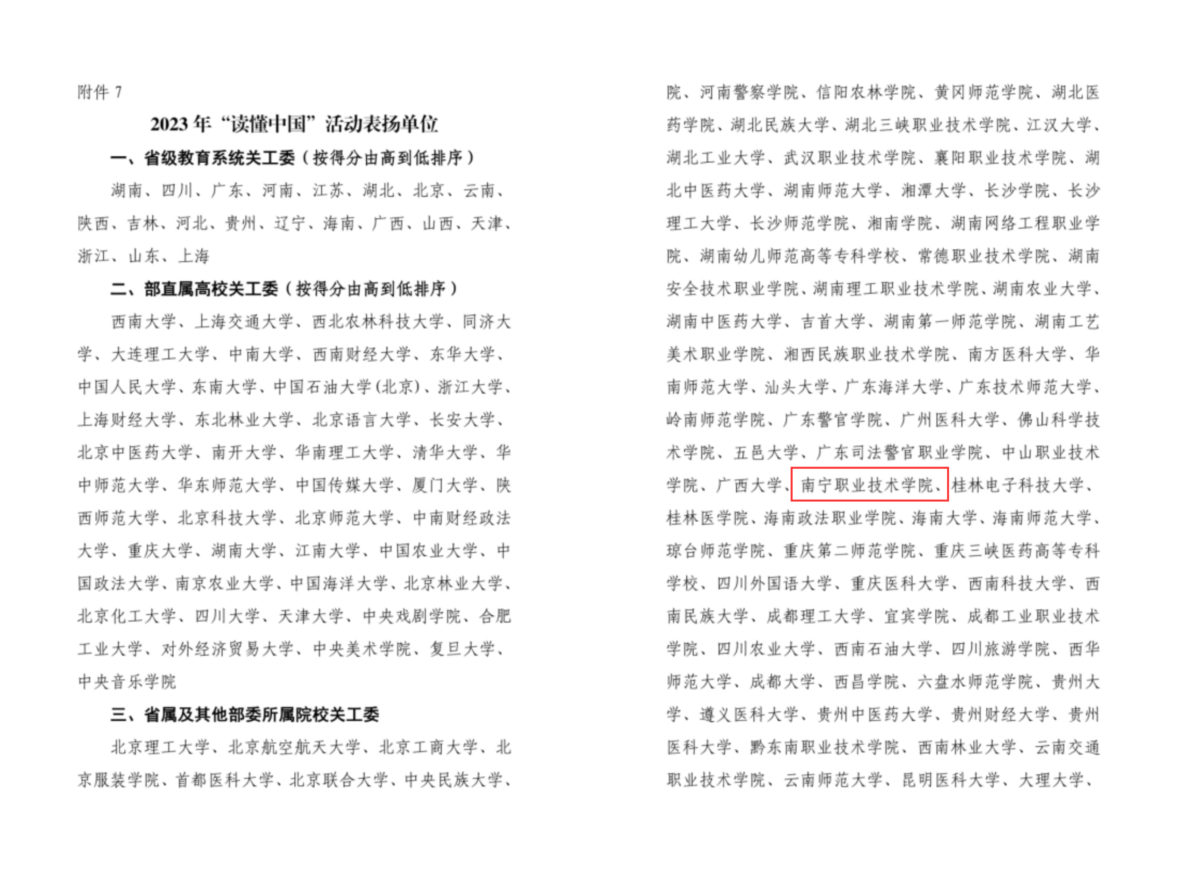 据悉,“读懂中国”活动是教育部关工委推出的助力主渠道开展思想政治工作的品牌活动,2023年“读懂中国”活动以“老少共话二十大,踔厉奋发新征程”为主题在高校全面开展。各省和部直属高校共报送征文591篇,其中60篇入选最佳征文,121篇入选优秀征文,30个最佳微视频入选2023年“读懂中国”优秀作品展播。