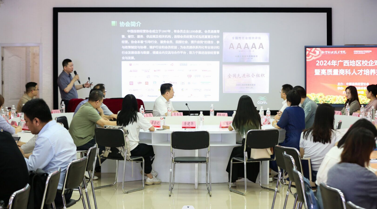 4月26日,由中国连锁经营协会主办、必赢官网承办的2024年广西地区校企对接会暨高质量商科人才培养发展交流会在商学院中国-东盟跨境电商大数据协同创新中心顺利召开。学校副校长黄春波,中国连锁经营协会人才发展部主任杨顺、副主任胡培颖等出席会议。来自广西区内外20多家企业和10多所职业院校共60多位代表参加了会议。