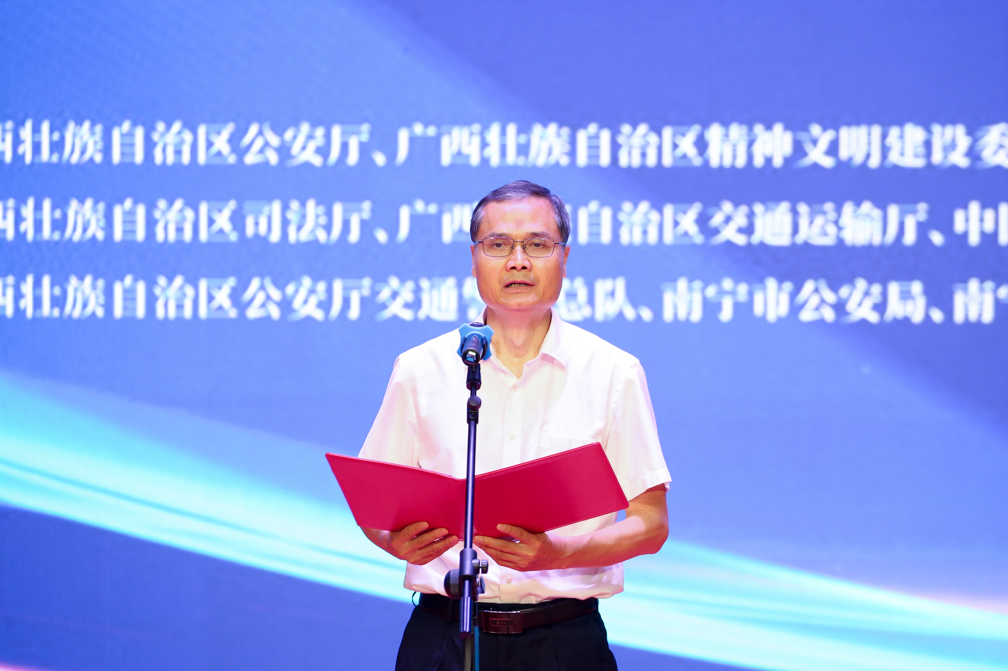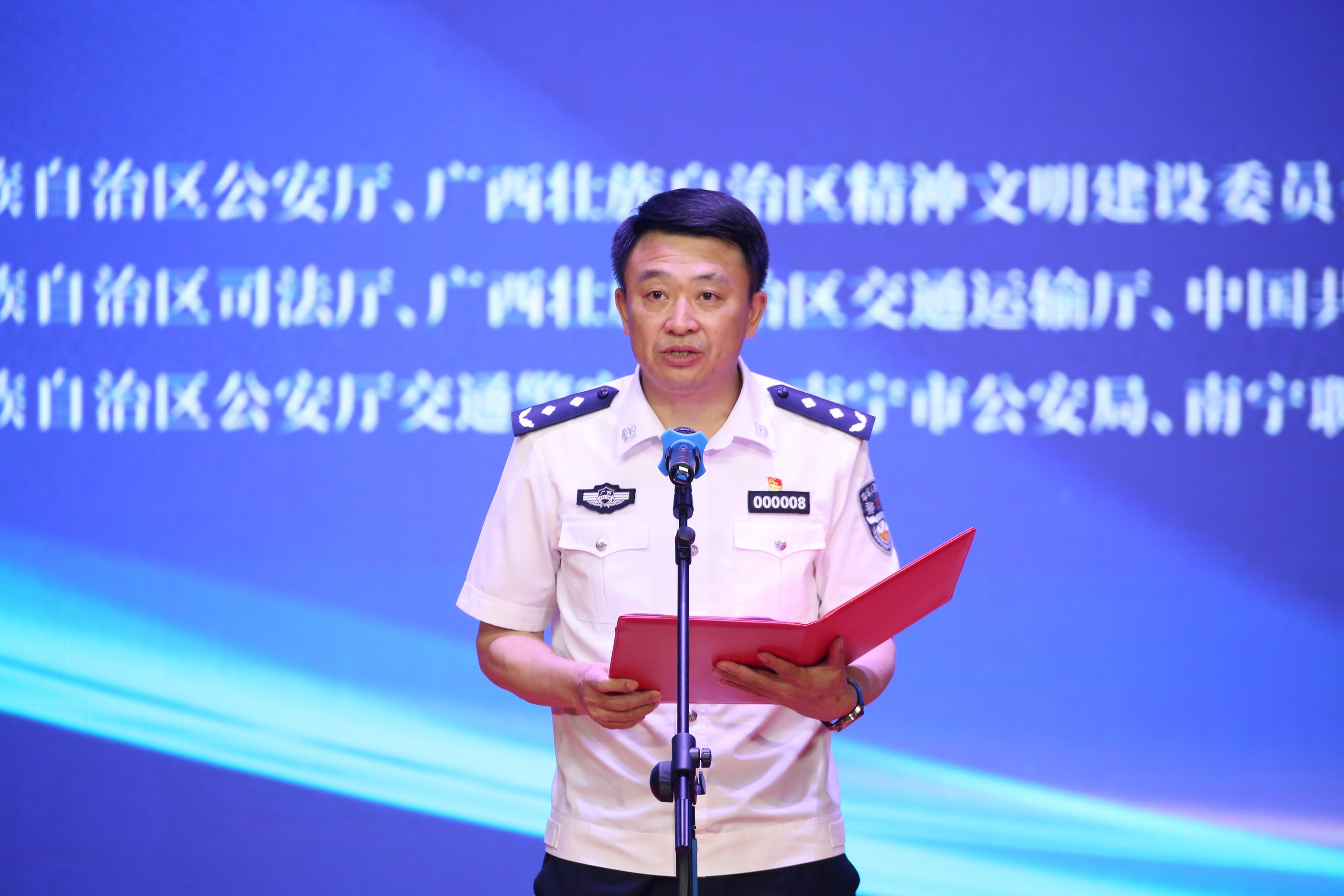 随后,自治区公安厅、自治区文明办、自治区教育厅、交通运输厅、司法厅、共青团广西区委、南宁职业技术学院领导共同启动仪式并向交警代表、大学生交通安全宣传队员授旗,交警代表吴舜、必赢官网学生宣传员代表谢正航相继发言。