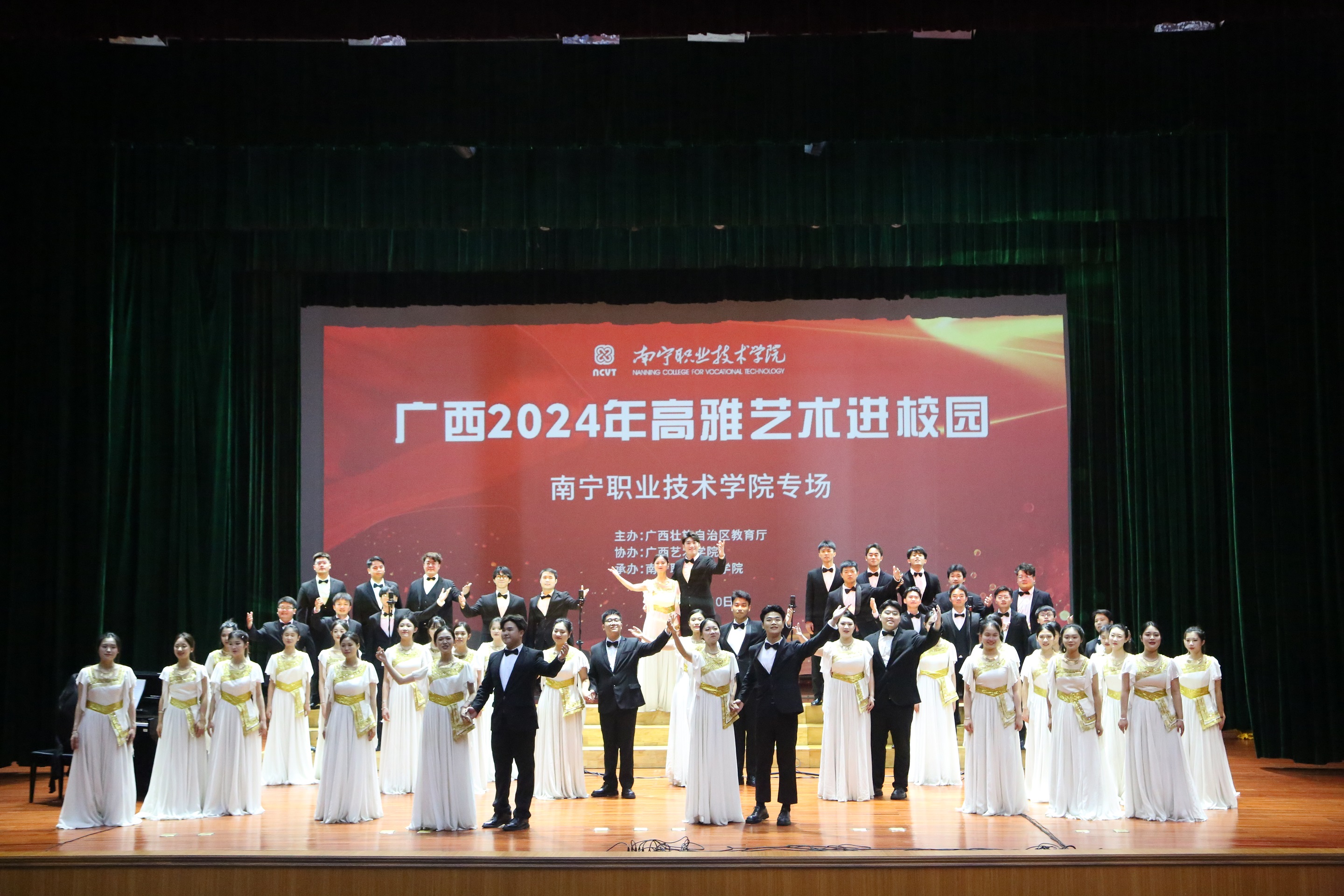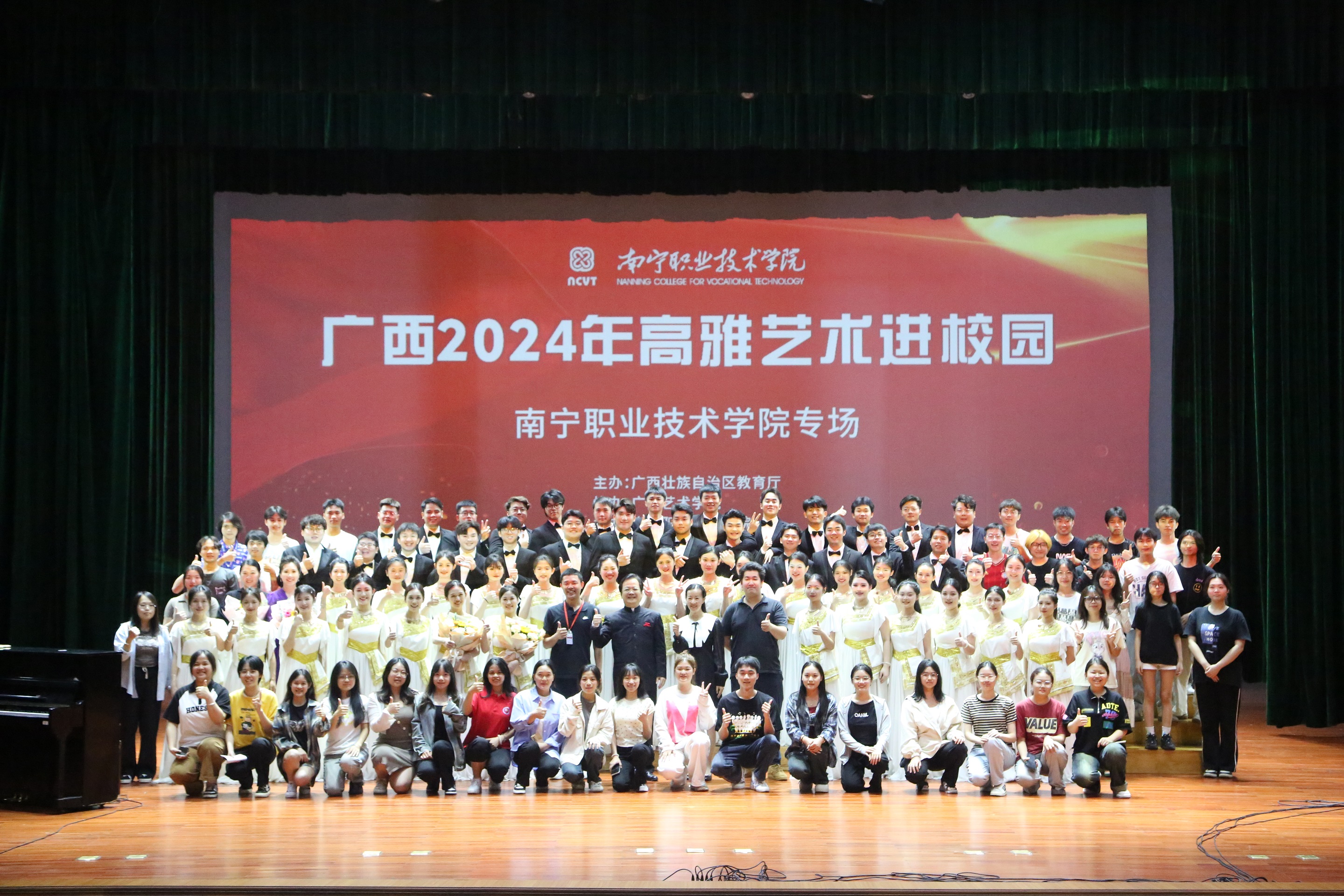 5月10日,由自治区教育厅主办的广西2024年高雅艺术进校园活动在学校大礼堂精彩上演。广西艺术学院二级教授、享受国务院政府特殊津贴专家华山担任此次活动指挥。学校副校长万玉文以及800余名师生共同聆听了这场高雅的音乐盛宴。