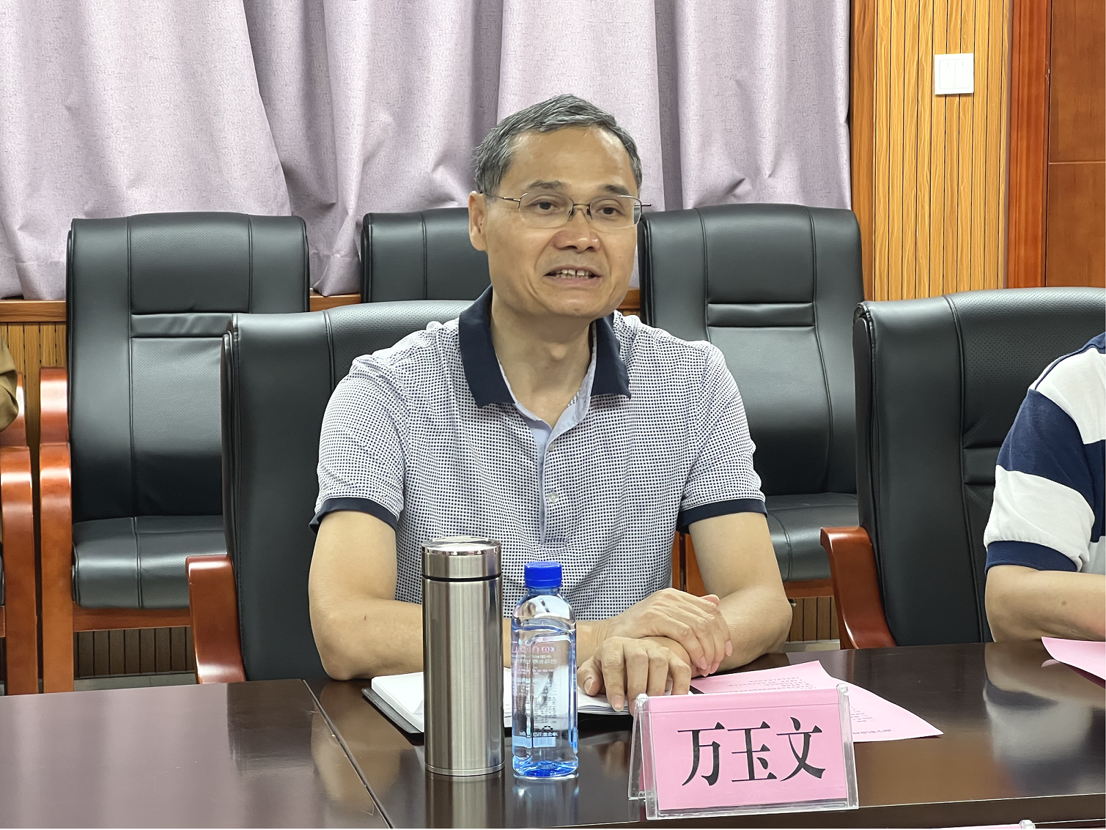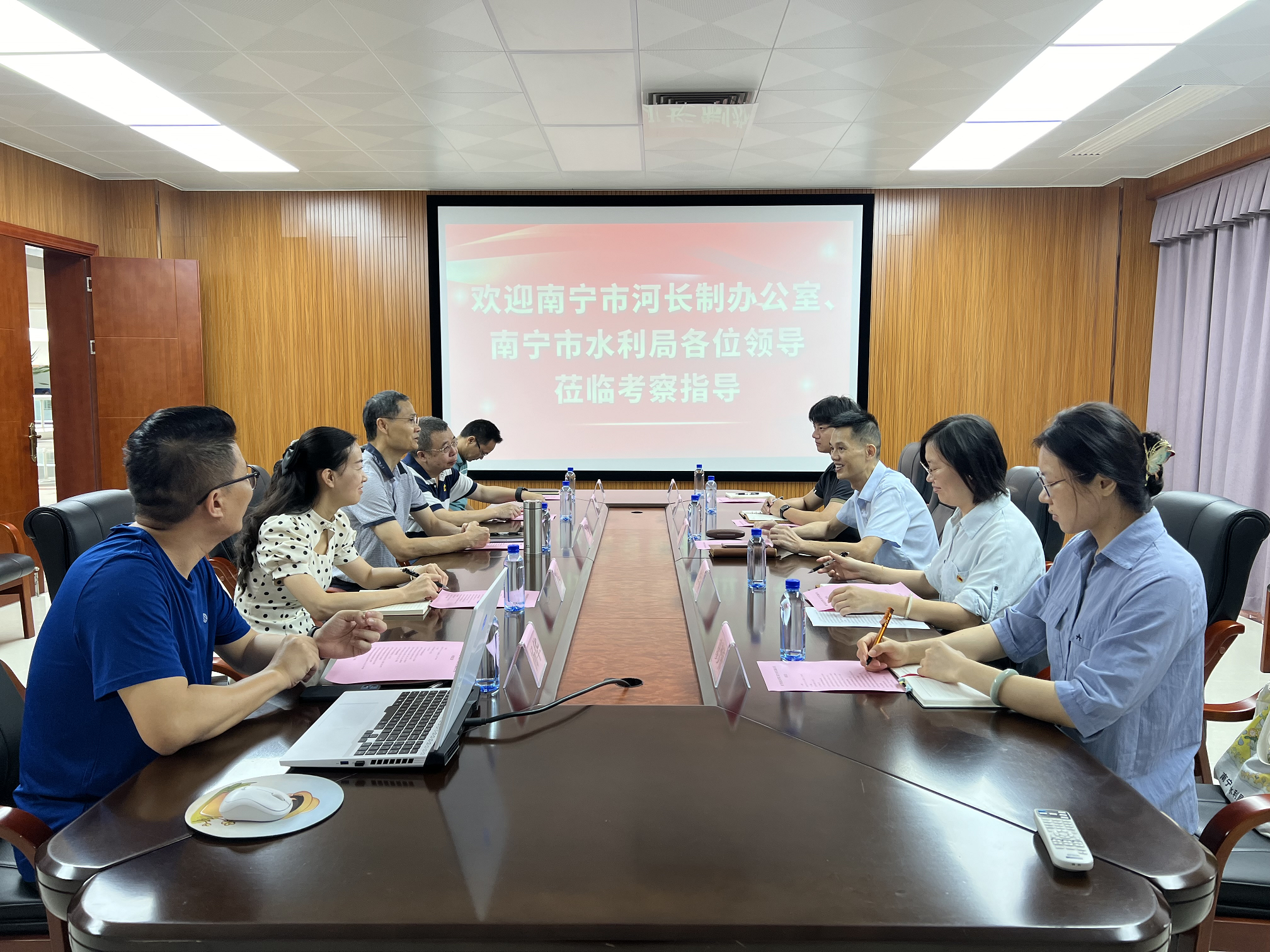 5月17日,南宁市河长制办公室专职副主任农世林一行5人到必赢官网考察交流。学校副校长万玉文参加座谈交流。