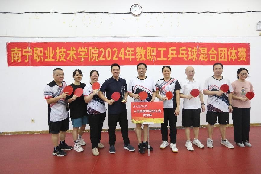 在比赛现场,选手们挥汗如雨,精彩地运用着各种技巧,每一次挥拍都充满了力量与激情。接发球抢攻、大力扣杀、推挡等策略交替使用。最终,人工智能学院分工会脱颖而出,荣获冠军,党群分工会、健康与旅游学院分工会、人文教育学院分工会分获第二、三、四名,新能源汽车学院分工会、国际学院分工会、财经学院分工会、后勤财务培训分工会获得并列第五名。