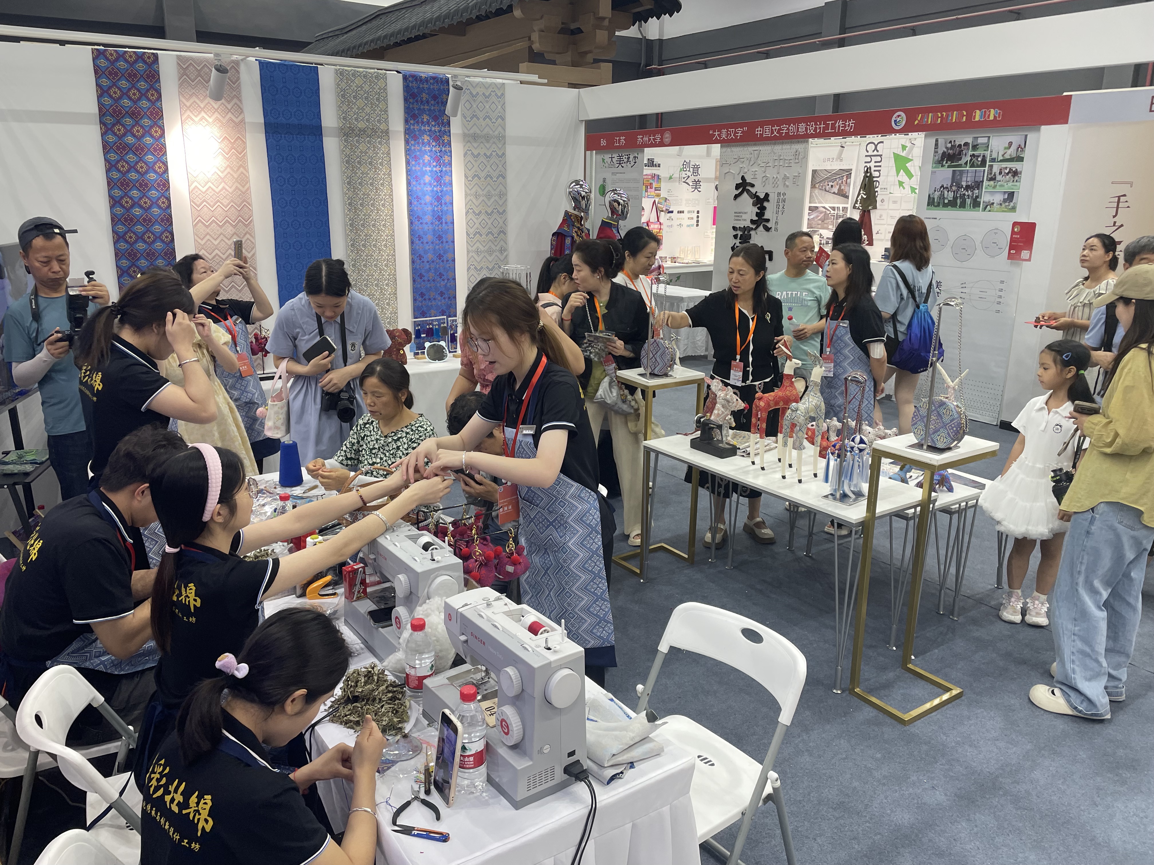 各参展院校师生代表和襄阳市民在工作坊参与互动体验(龙宇威/摄)