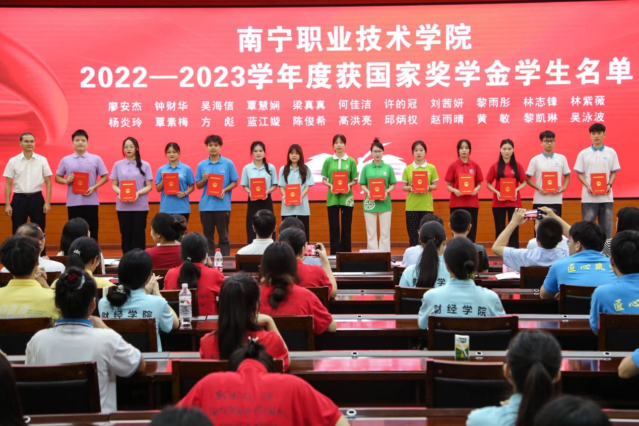 颁奖典礼上,学生工作部(武装部、学生工作处)负责人宣读获奖学生名单和学生资助宣传大使名单。商学院国家奖学金获奖学生代表林志锋发言。出席典礼的领导和嘉宾一同为获奖学生代表和学生资助宣传大使颁发证书,授予绶带。获奖学生代表带来了精彩的情景诗朗诵《少年中国说》,发出南职青年奋斗的最强音。