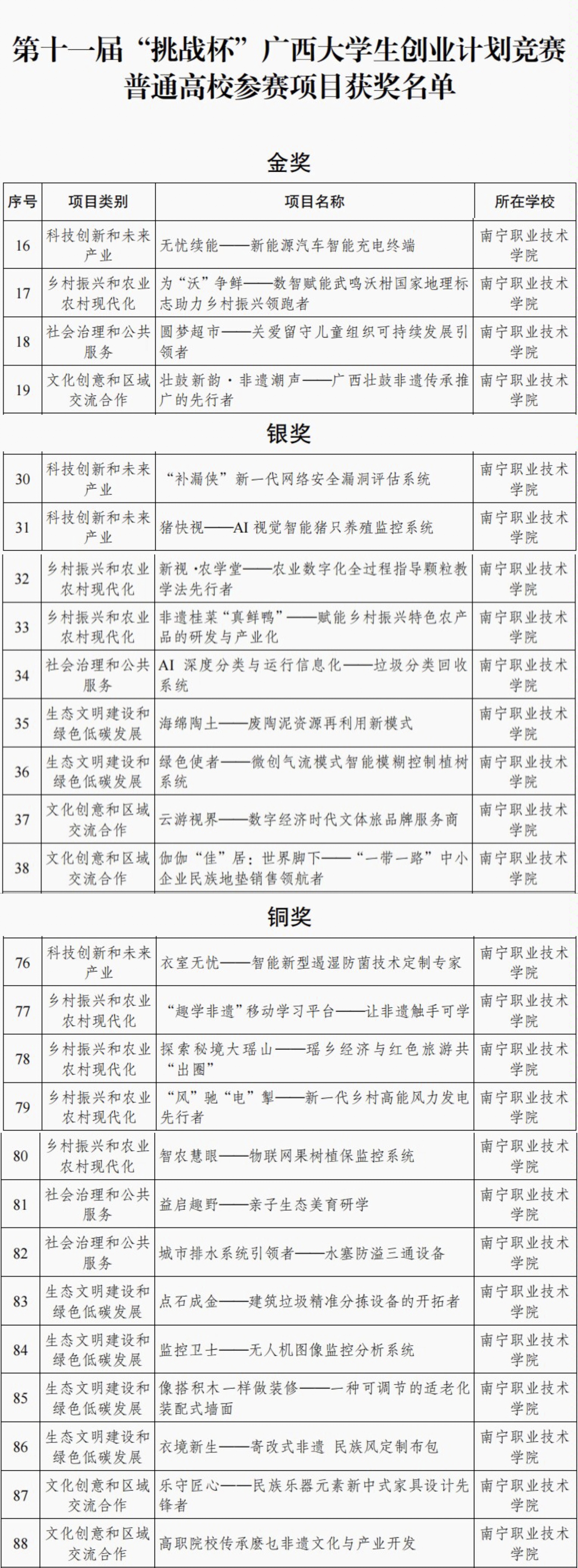 近日,共青团广西区委、自治区教育厅、自治区科协、广西学联公布第十一届“挑战杯”广西大学生创业计划竞赛获奖名单。必赢官网共有26件参赛作品获奖,其中金奖4项、银奖9项、铜奖13项,学校荣获“优秀组织奖”。