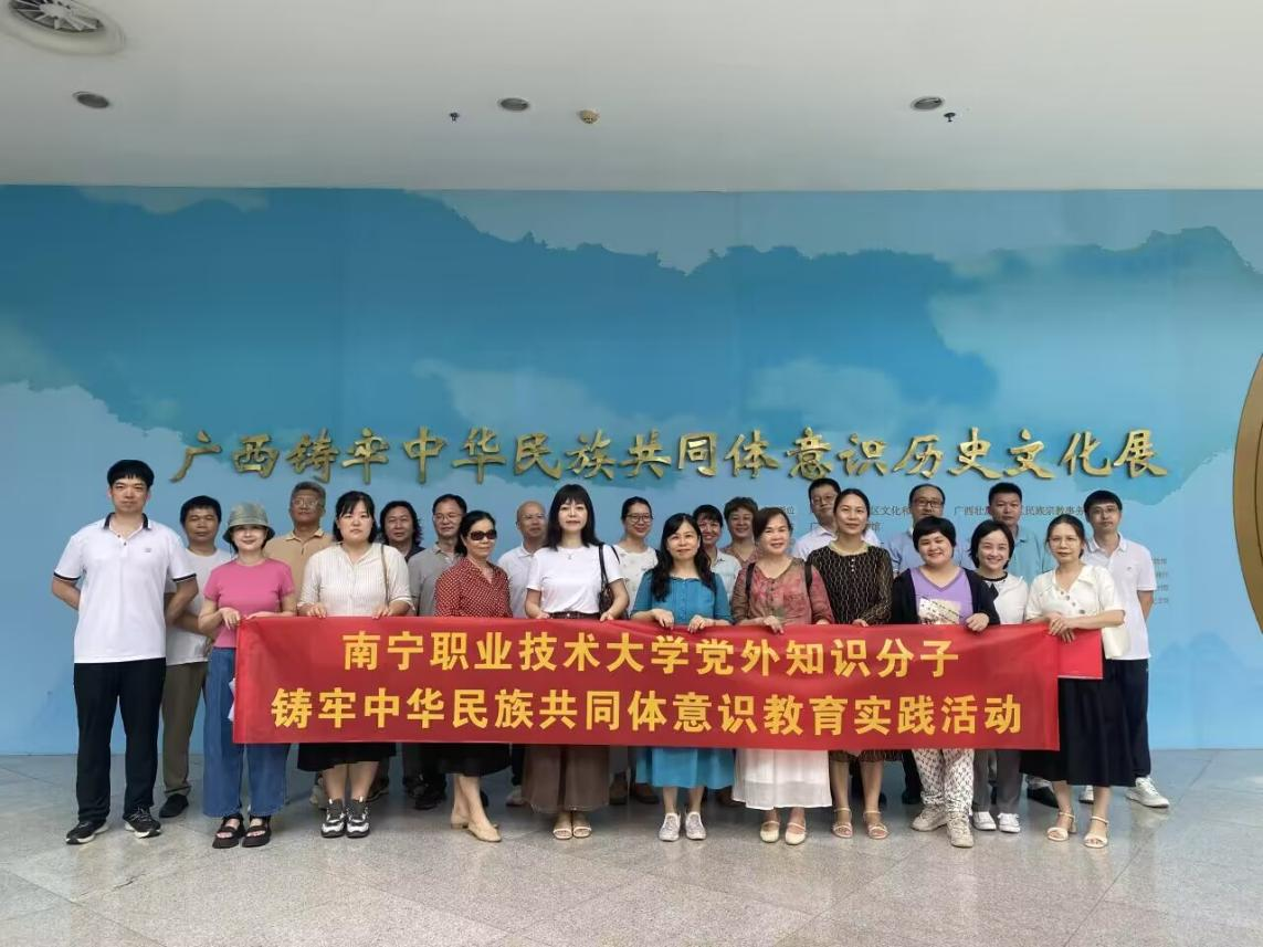 为进一步推进铸牢中华民族共同体意识教育,7月4日,学校党委统战部组织党外知识分子赴广西民族博物馆参观“广西铸牢中华民族共同体意识历史文化展”,学校知联会会员代表、民主党派代表和党委统战部相关同志参加活动。
