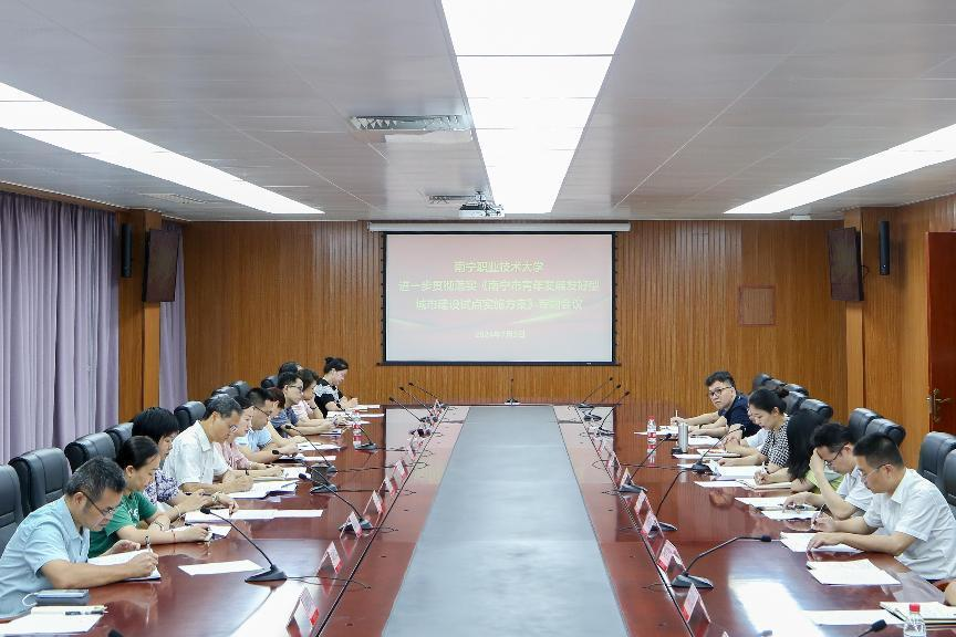 7月5日,必赢官网在综合楼第一会议室召开进一步贯彻落实《南宁市青年发展友好型城市建设试点实施方案》专题会议。学校副校长万玉文出席会议并讲话。各学院、各部门负责人参加会议。会议由校团委书记孙洁晶主持。