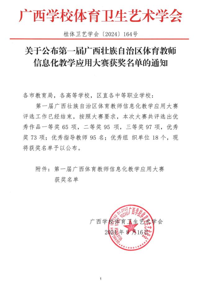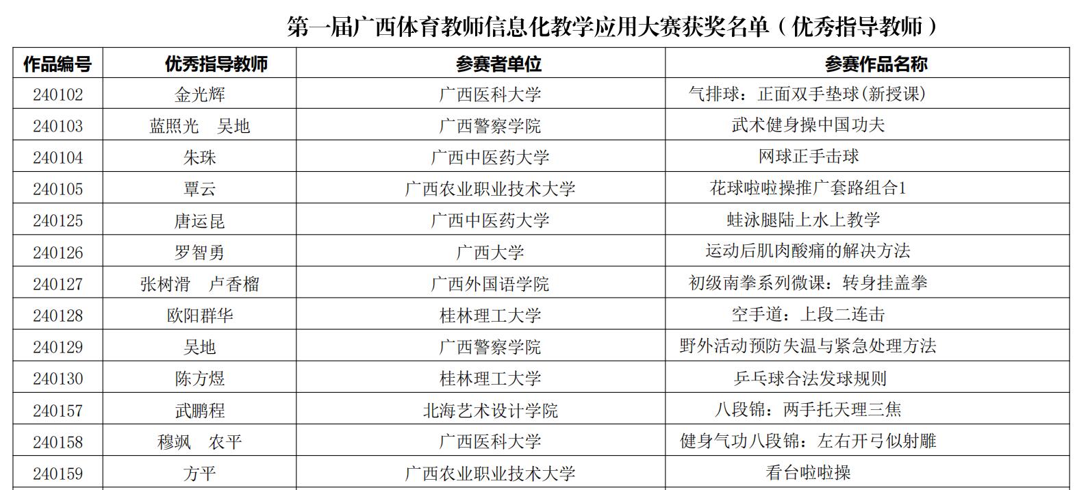 近日,广西学校体育卫生艺术学会公布了第一届广西壮族自治区体育教师信息化教学应用大赛获奖名单。必赢官网共有6件参赛作品获奖,其中一等奖2项、二等奖2项、三等奖1项、优秀奖1项。