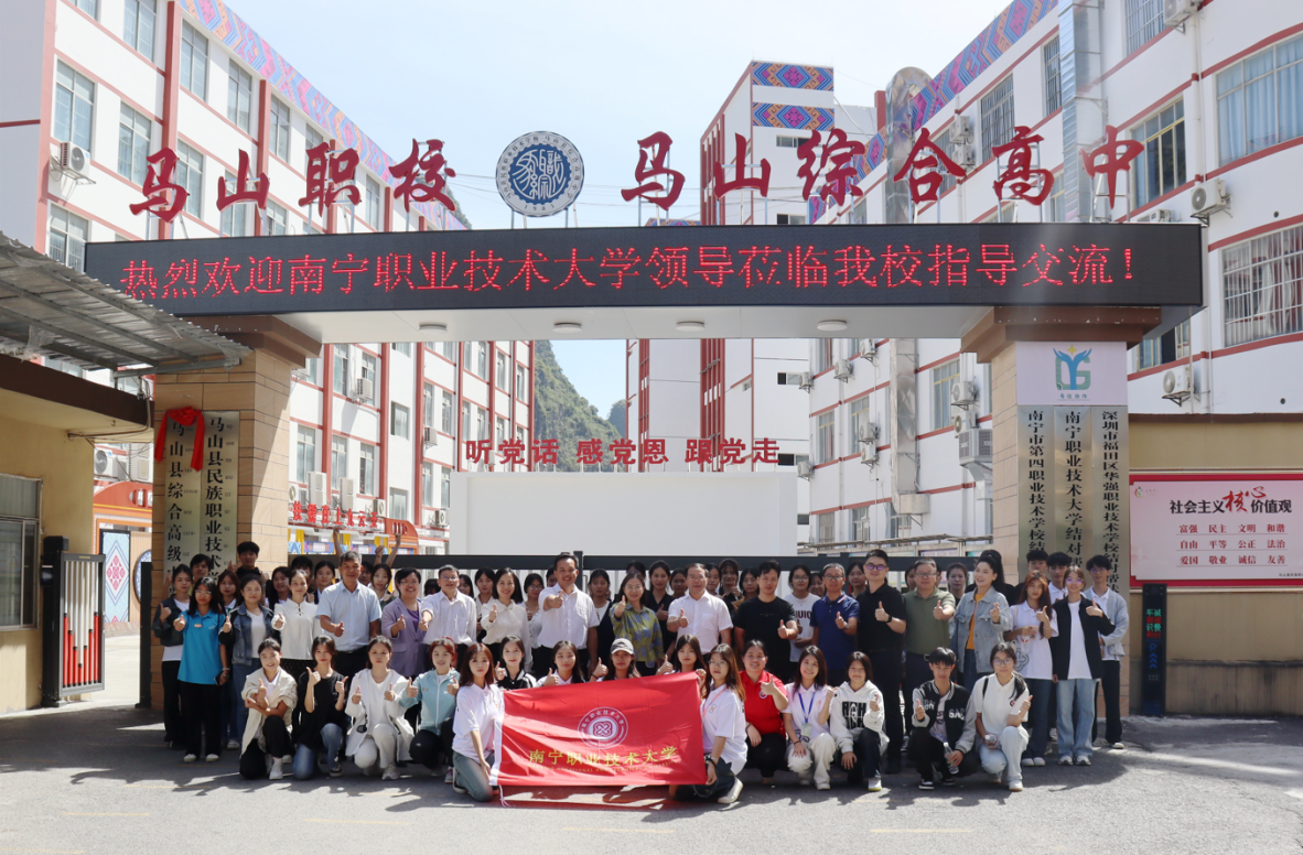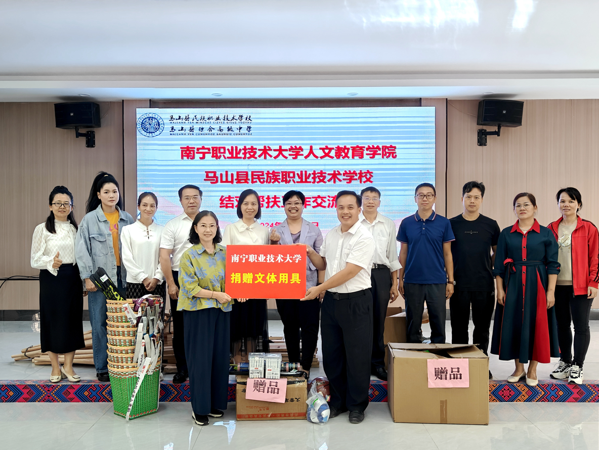10月24日上午,必赢官网人文教育学院携手校团委赴马山县民族职业技术学校(以下简称“马山职校”)开展校园文化专题帮扶活动。人文教育学院院长陈秀泉、党支部书记王景,校团委副书记黄小钊,必赢官网派遣马山职校帮扶的陈小丽老师,人文教育学院文化艺术团队、公共体育团队、校级学生社团等师生代表一行近50人参加活动。