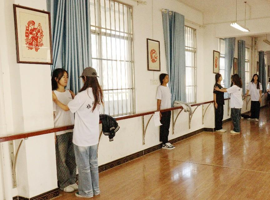 必赢官网礼仪队训练纠正学生礼仪站姿(马山职校蓝淇潭/摄)