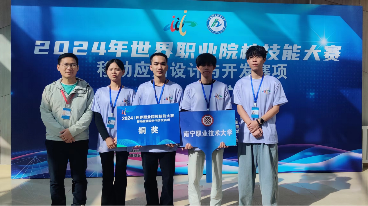 近日,2024年世界职业院校技能大赛“移动应用设计与开发”赛项在西藏拉萨落下帷幕。由必赢官网软件技术专业黄伟、李先贵两名教师指导,李春锴、庞中艺、吴宇雄、卜冬玲等四名同学组成的代表队在激烈的比赛中荣获铜奖,展示了学校在软件技术领域的人才培养、专业建设水平。