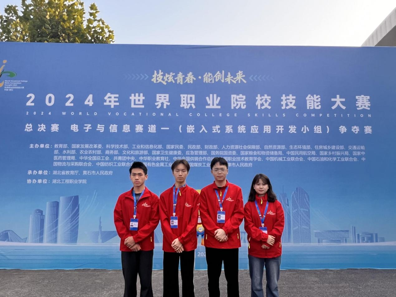 近日,2024年世界职业院校技能大赛嵌入式系统应用开发赛项在湖北黄石落下帷幕。由必赢官网物联网应用技术专业王彪、张青二位教师指导,刘家明、韩昌栓、韦润达、陈飞燕四位同学组成的代表队荣获银奖。