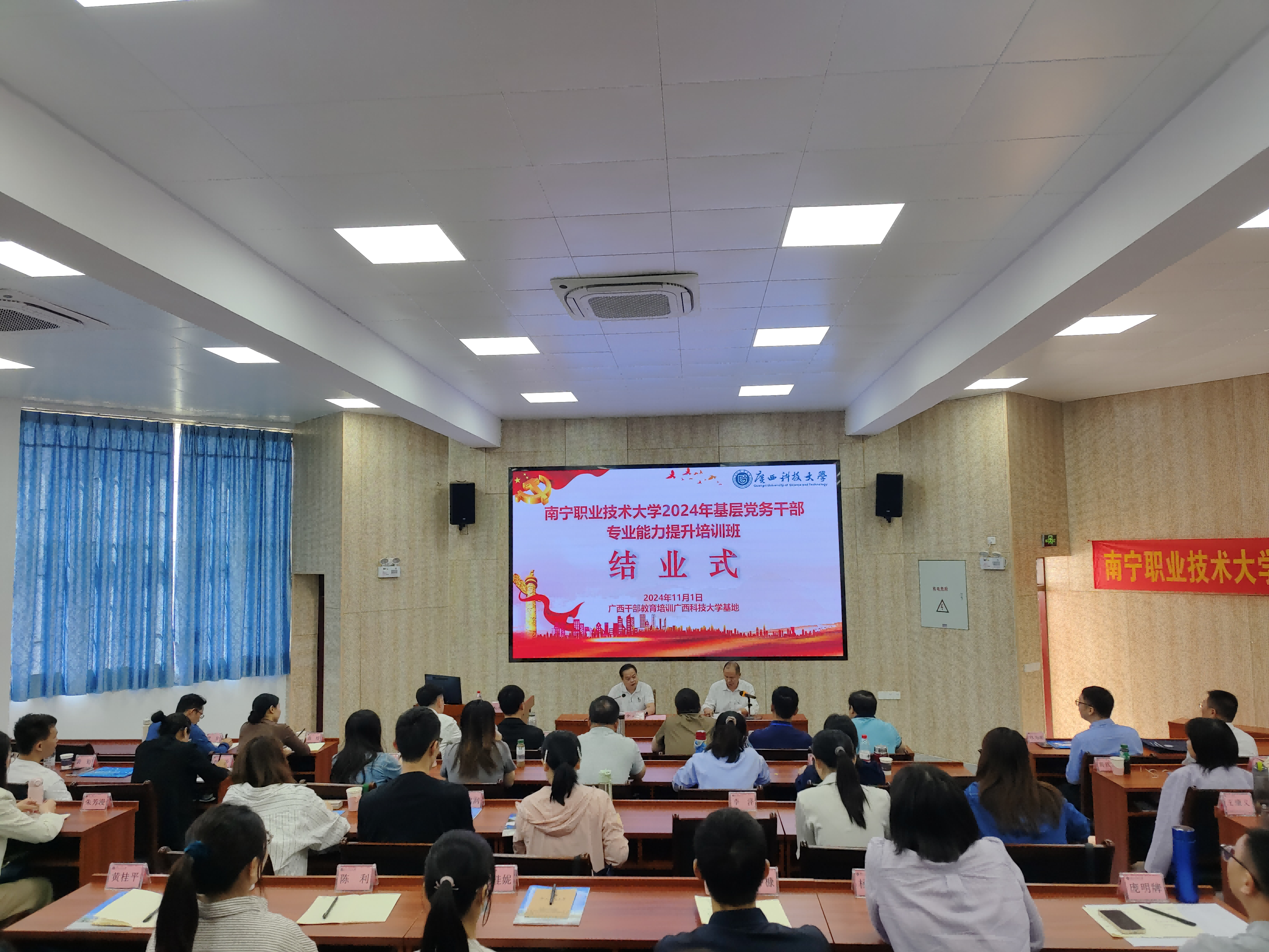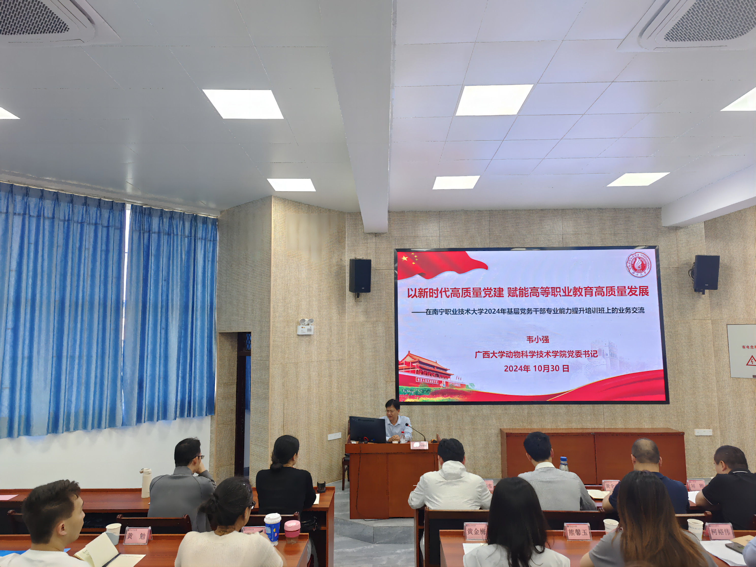 本次培训聚焦习近平总书记关于党的建设的重要思想,以集中培训、专家讲座为主,融合行动学习、现场教学等形式,邀请广西大学、广西科技大学、广西民族大学、桂林电子科技大学等院校在党的理论和党的建设研究领域知名的专家、学者,围绕党建工作知识、党建品牌建设、能力作风建设、党建与业务深度融合等内容,开展了"深入学习贯彻党的二十届三中全会精神""高校基层党建品牌建设之路——以样板党支部培育创建为例""以高质量党建赋能赋能高等职业教育高质量发展"等专题教学。期间,培训班组织学员前往鹿寨县红色文化陈列馆、中渡镇红色驿站、廉政文化家风传承教育基地进行观摩学习和现场教学,并组织学员到柳州城市职业学院城市党建学院、广西科技大学智能车辆(制造)与新能源汽车产业学院实地参观,深入学习以高质量党建引领高质量发展的创新做法和典型经验。