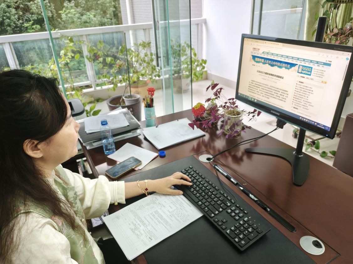 科技处教职工通过网络开展法治校园学习(科技处张业祺/摄)
