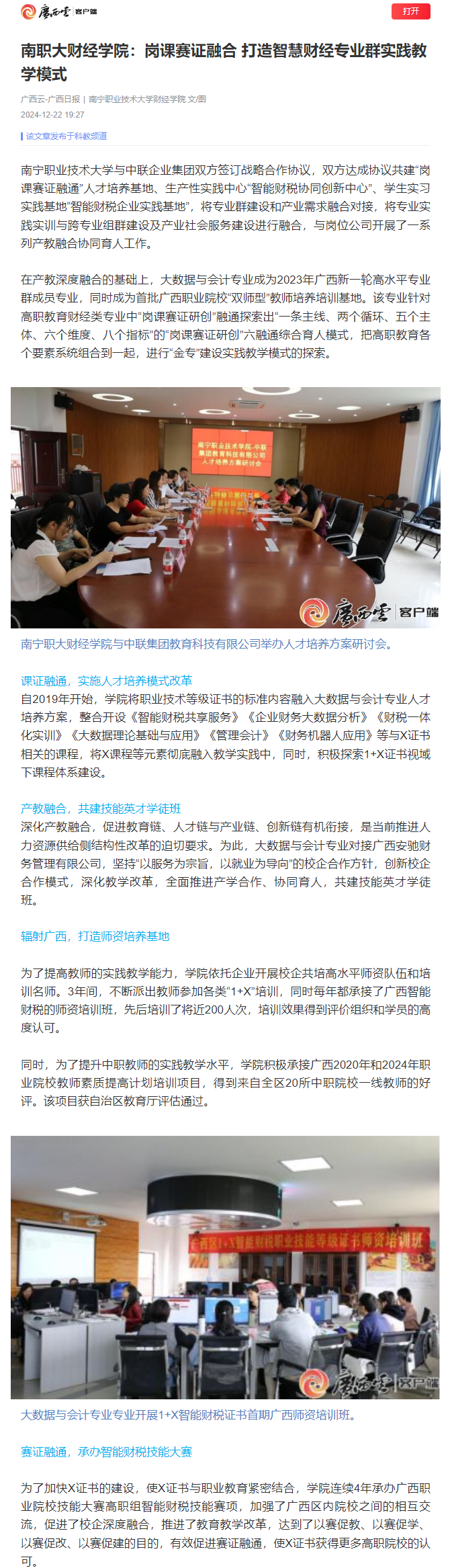 南职大财经学院:岗课赛证融合 打造智慧财经专业群实践教学模式
