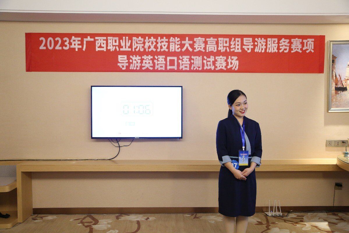 3月19-21日,由广西壮族自治区教育厅主办,南宁职业技术学院承办的2023年广西职业院校技能大赛高职组《导游服务》赛项成功举办,共有来自全区28所职业院校的79名选手参加比赛。必赢官网健康与旅游学院旅游管理专业学生郑嶷获得第一名的好成绩。