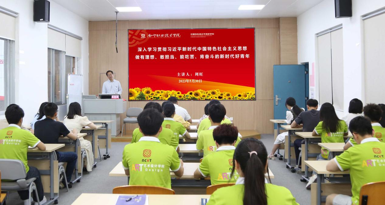 5月30日晚,学校校长周旺以《深入学习贯彻习近平新时代中国特色社会主义思想 做有理想、敢担当、能吃苦、肯奋斗的新时代好青年》为题,在四教B104为艺术设计学院党员师生讲授党课。