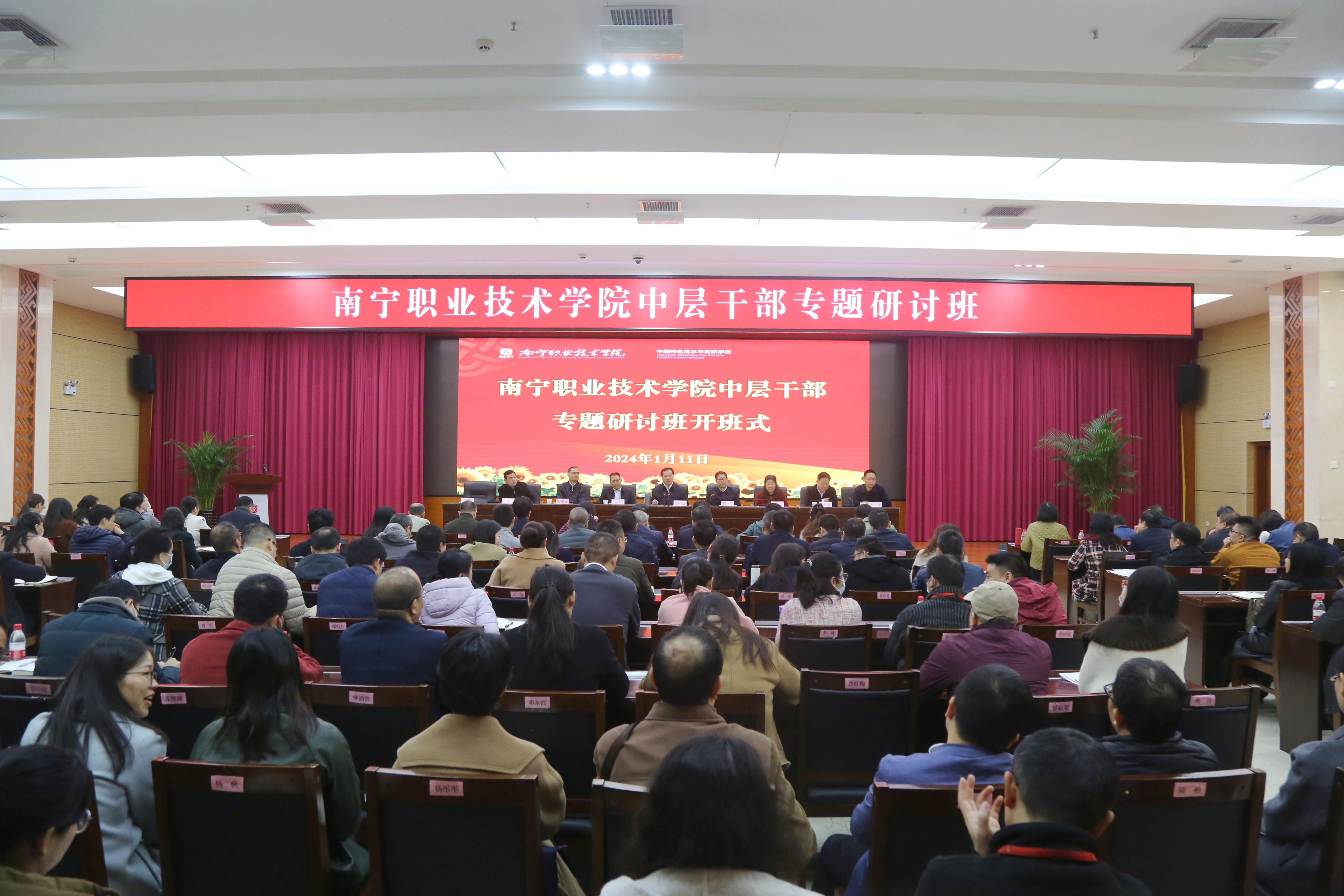 1月11日,必赢官网中层干部专题研讨班在会议中心举行开班式,研讨班主要任务是深入学习贯彻落实习近平总书记对广西重大方略的要求,科学谋划2024年工作任务。学校党委书记黄明瑞,校长周旺,党委副书记杨清源,纪委书记罗桂全,副校长万玉文、黄春波、李东升、胡卫东、王凤岭出席开班式。开班式由周旺主持。黄明瑞作开班动员讲话。他全面总结过去一年学校在党建工作、主题教育、升本工作、“双高”建设、民生工作等方面取得的成效,...