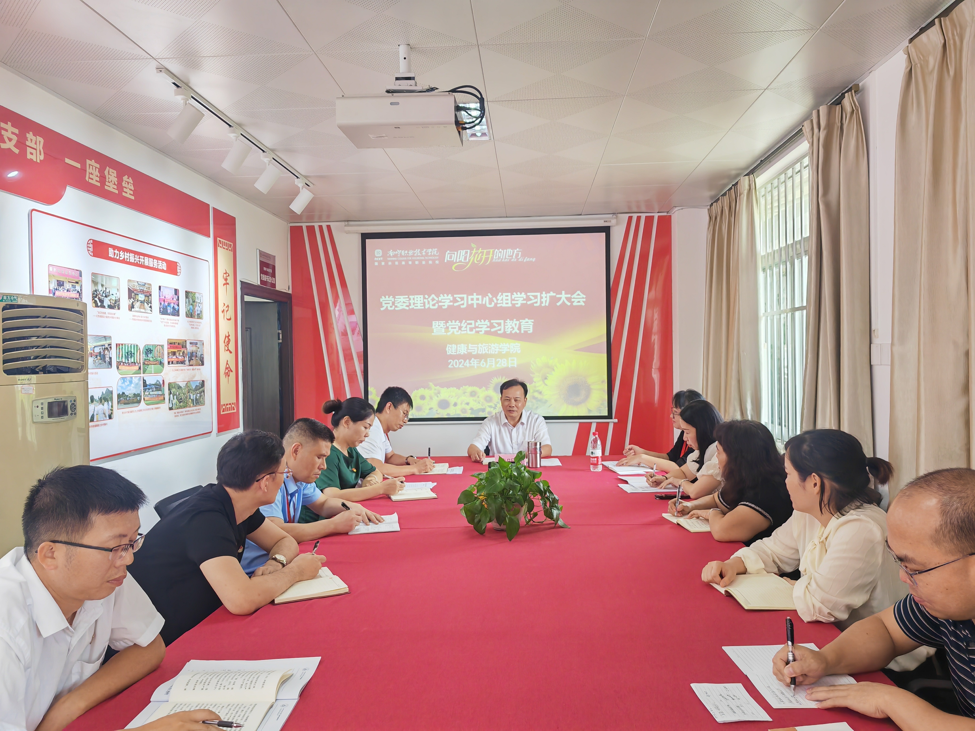 6月28日,健康与旅游学院在一训407党员活动室召开党纪学习教育专题集中学习研讨暨党委理论学习中心组学习(扩大)会,党委书记黄明瑞到会指导并讲话。黄明瑞对本次健康与旅游学院党纪学习教育专题集中学习研讨暨党委理论学习中心组学习(扩大)会给予肯定。他指出,在学校成功升本的关键时期,我们更要认真领会、深刻把握党的廉洁纪律和群众纪律的内涵要义和实践要求,把习近平总书记的重要讲话、重要论述精神切实转化为推动学...