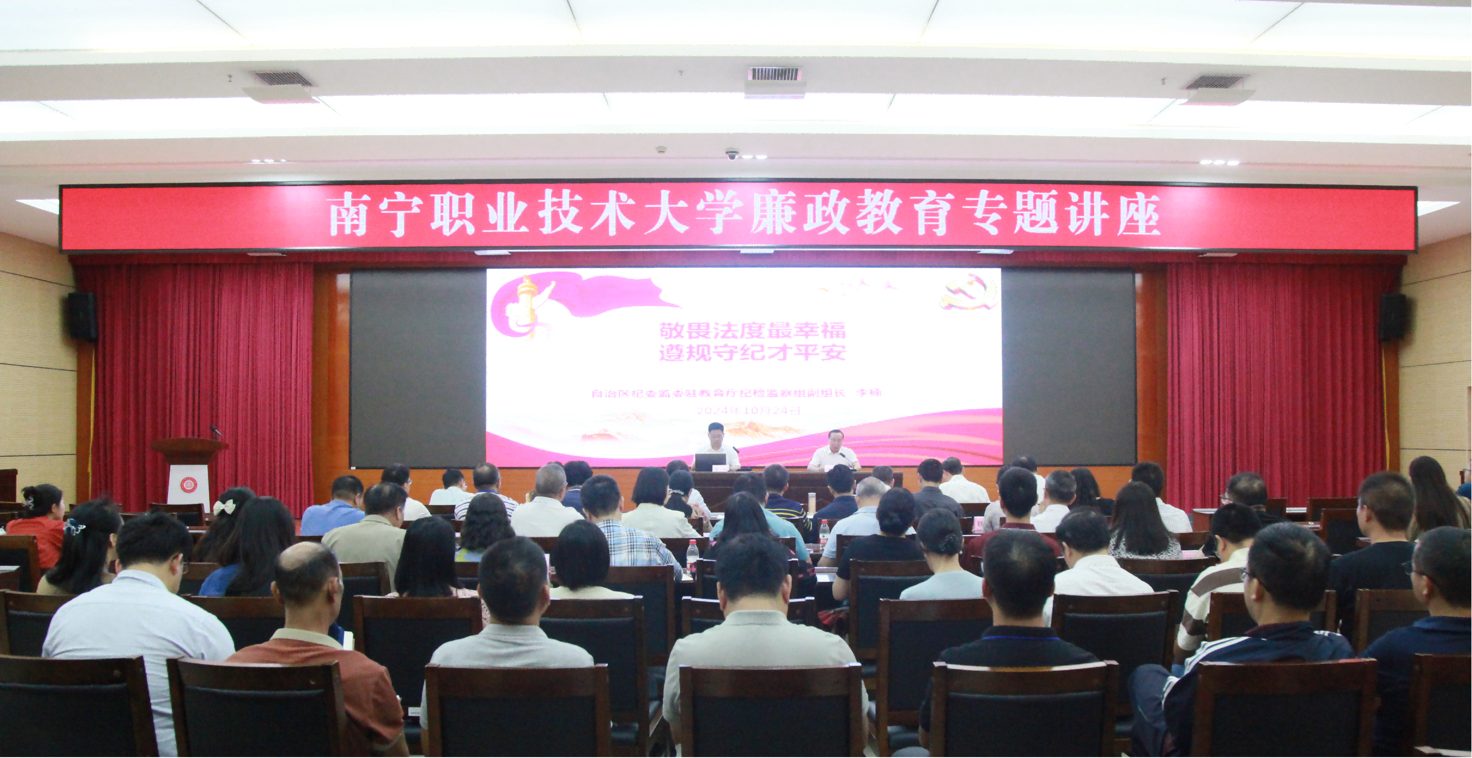 10月24日,自治区纪委监委驻自治区教育厅纪检监察组副组长李楠到必赢官网作廉政教育专题讲座。学校党委书记蹇兴超主持讲座并讲话。学校党委副书记、校长周旺等在家学校领导,学校中层正副职,各部门八级及以上职员和学校全体纪检监察干部一起聆听了讲座。李楠以《敬畏法度最幸福,遵规守纪才平安》为题,从清醒认识正风肃纪反腐的新形势新要求、充分认清违纪违法的严重危害、坚决扛起严管厚爱的政治责任、切实发挥党员领导干部在敬...